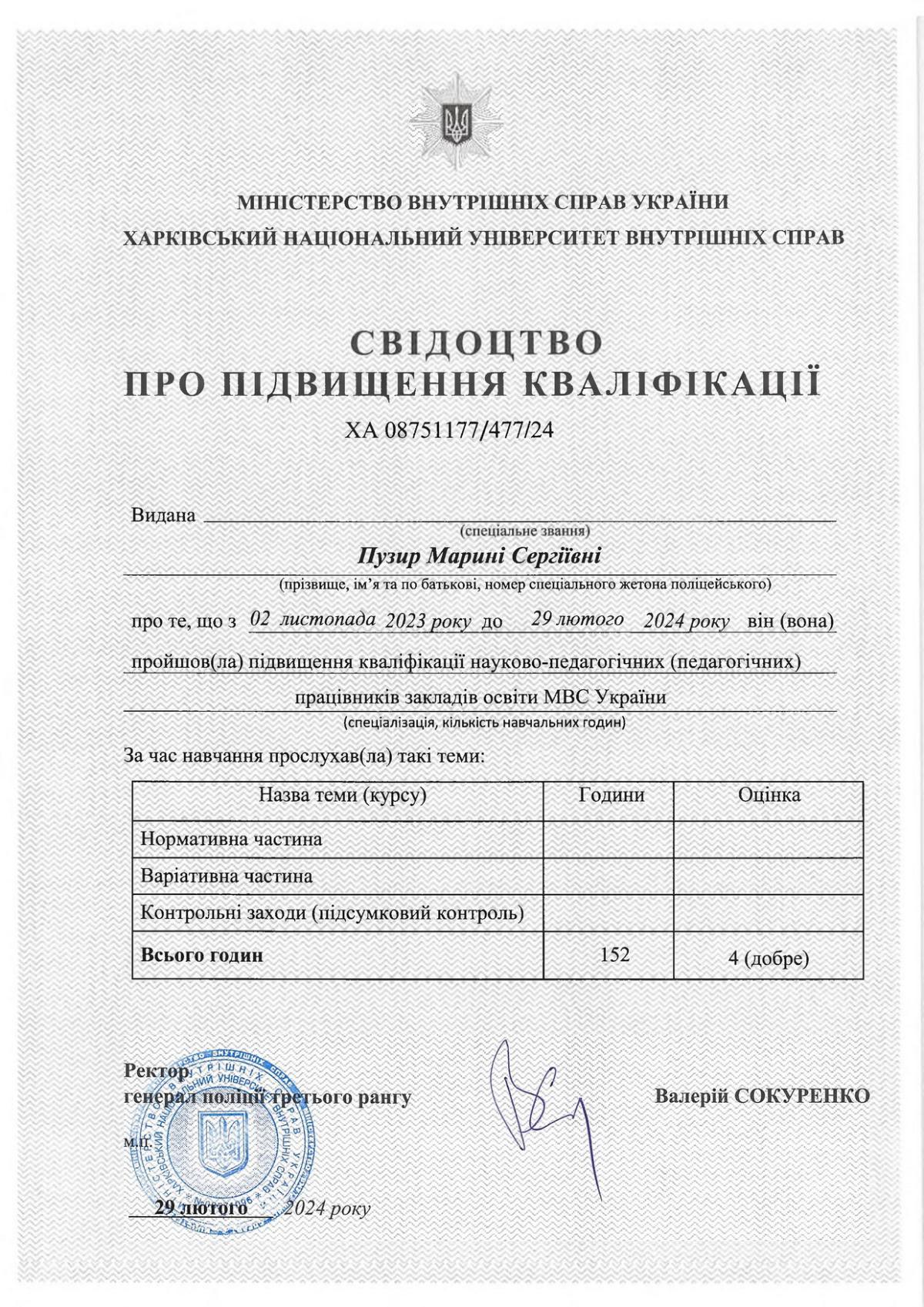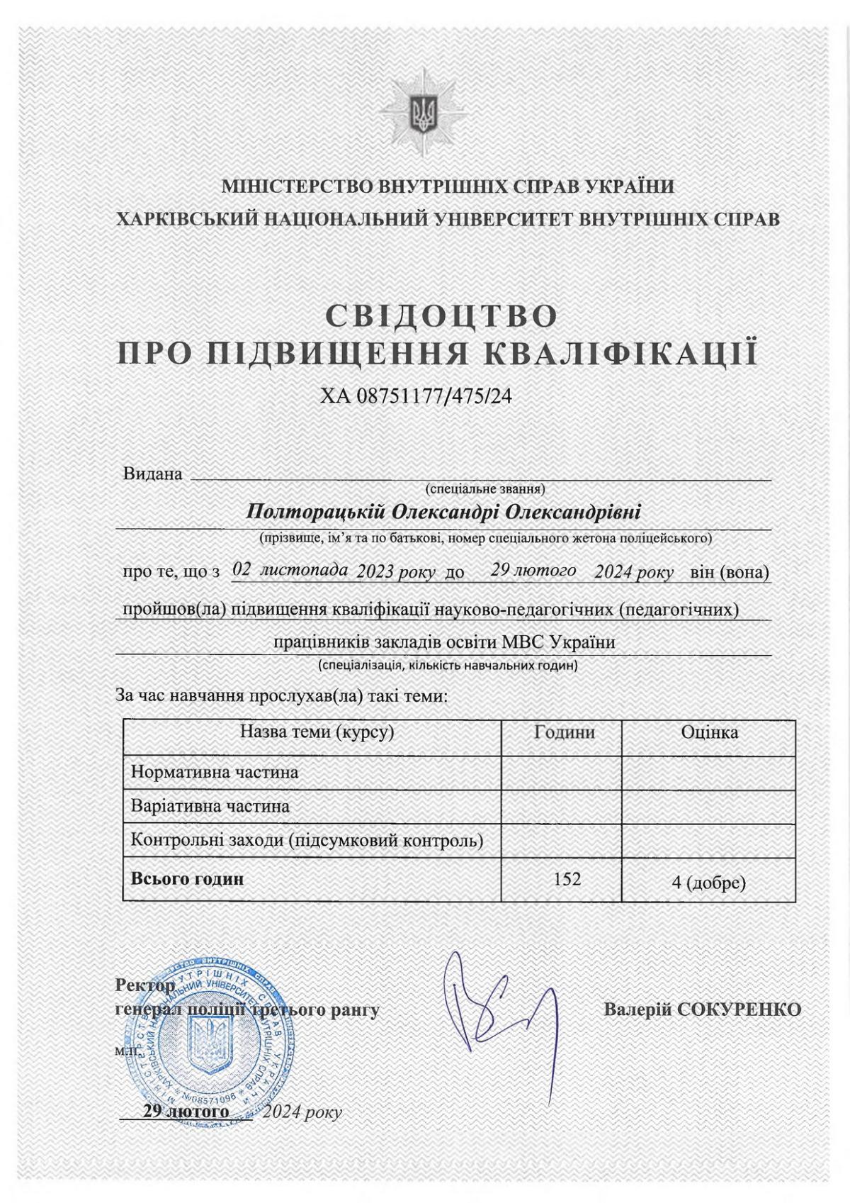 Regulatory Documents of Kremenchuk Flight College of Kharkiv National University of Internal Affairs