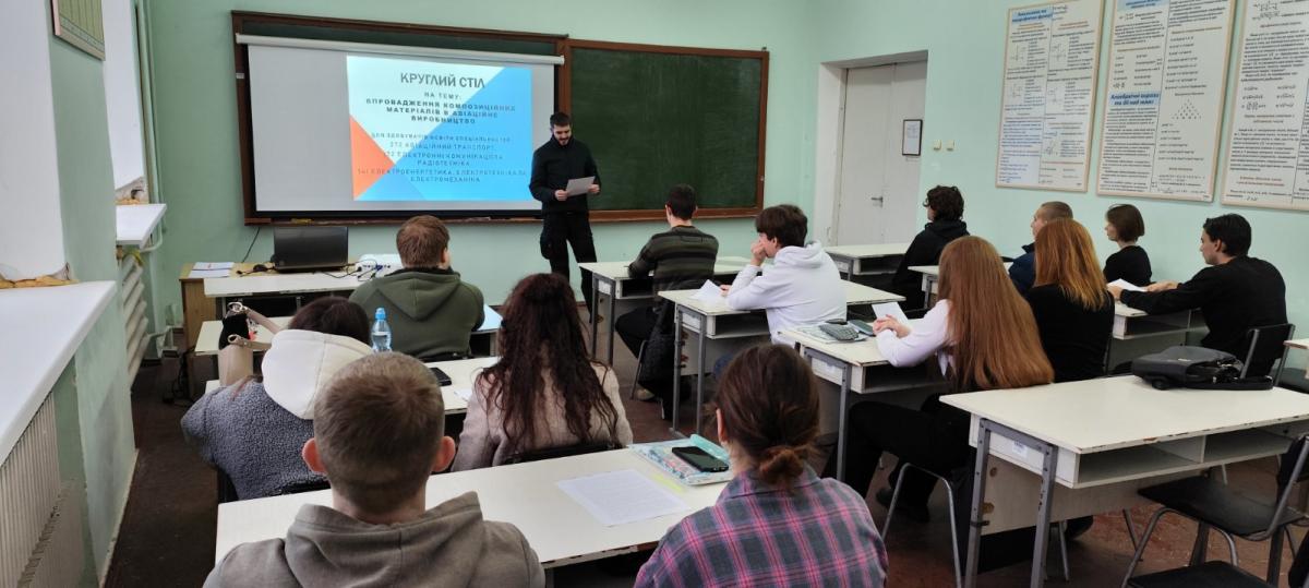 On 27 November 2024, a round table on the topic ‘Introduction of composite materials in aviation production’ was held at the premises of the college in room 417. A round table was organized by committee, which consisted of: chairman of the organising committee Siora A.S.; members of the organizing committee Pushkar O.I., Siora V.V., Puzyr M.S. For an objective assessment of the participants' speeches and discussion of their reports, the jury was formed and approved: Siora A.S., Pushkar O.I., and Puzyr M.S.. The introductory words to the participants of the seminar were addressed by Olena Tsymbalistova, Deputy Director of the College for Educational and Scientific Activities, Olena Chernikhova, Head of the Department of Educational Process Organisation, and A.S. Siora, Chairman of the Organising Committee. They emphasised the purpose and objectives of the round table, namely, increasing interest in in-depth study of educational, special and professional disciplines, formation of research skills in students; popularization of the achievements of science, technology and the latest technologies; activation of all forms of extracurricular activities with students.