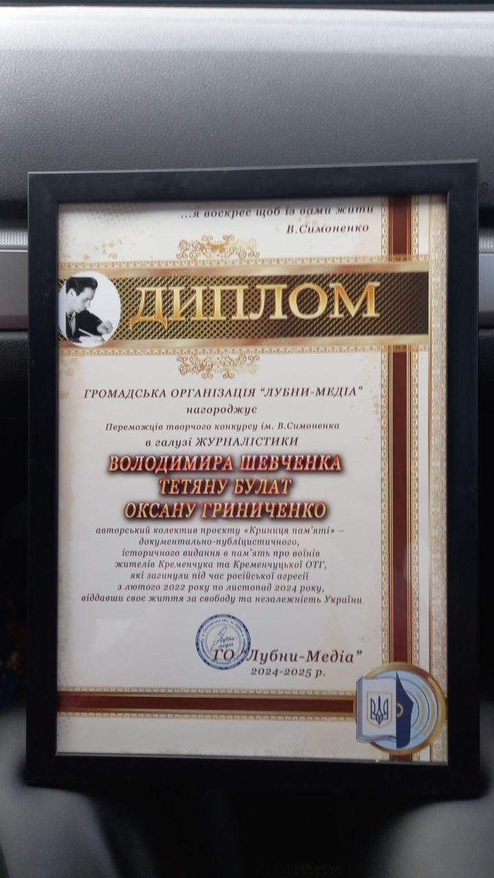 Creative project ‘Well of Memory - Heroes of Kremenchuk Region’, that is the book in 7 volumes co-authored by our co-worker Tetiana Bulat, the Head of the Leisure Department, BECAME A WINNER OF THE VASYL SYMONENKO COMPETITION in the journalism category. The competition was dedicated to the 90th anniversary of the birth of Ukrainian poet Vasyl Symonenko.