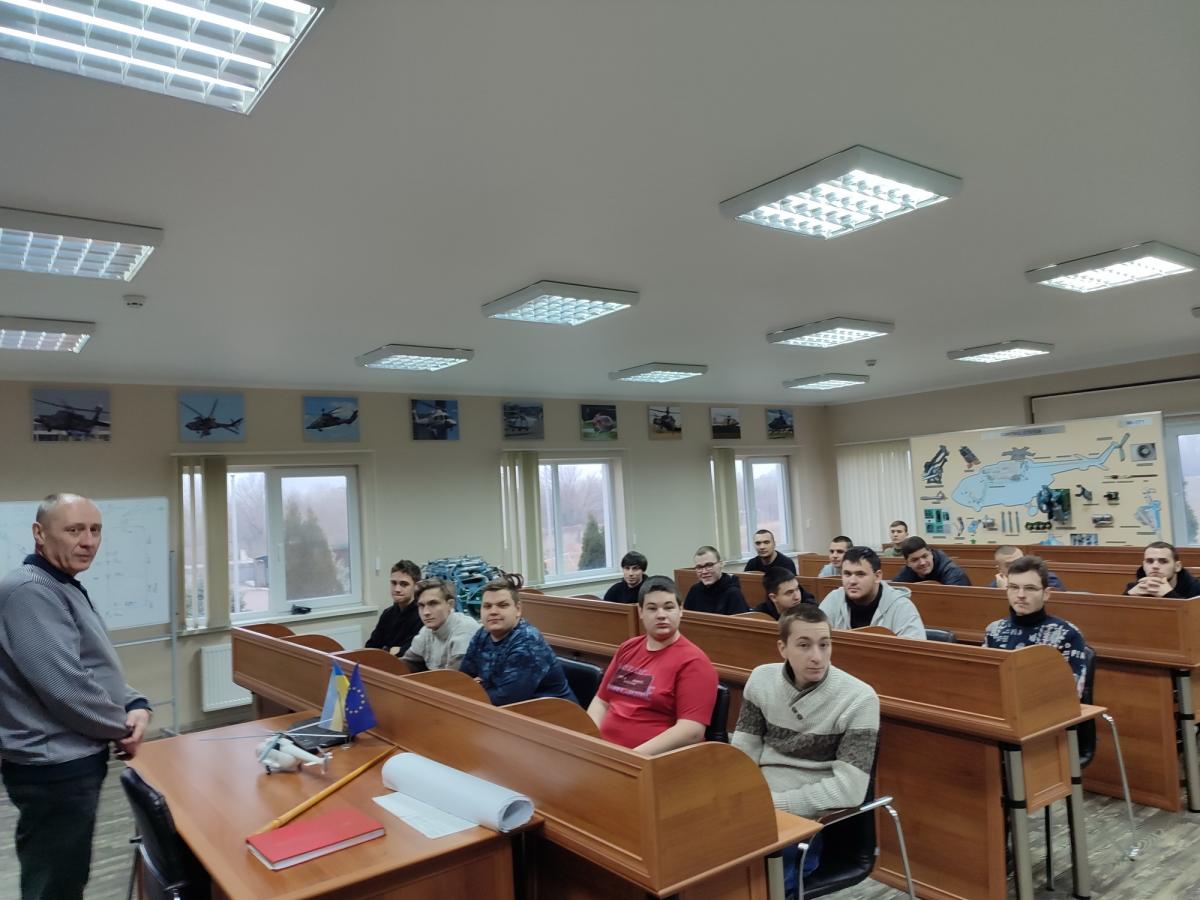 On 14 January 2025, higher education students of the group AVdms-23-1b majoring in Avionics took part in an on-site lecture on the discipline ‘Helicopter Aviation Equipment’. The event was held at the premises of Helitraining Ukraine LLC under the guidance of Yurii Stushchanskyi, a teacher at the Department of Electronic Communications, Radio Engineering and Avionics.
