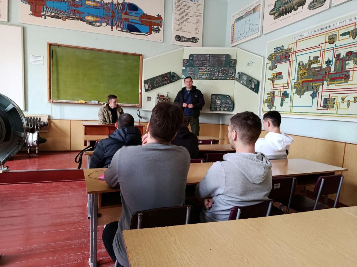 On 31.01.2025, a binary lesson was held on the discipline ‘Operation of aircraft in the aviation units of the Ministry of Internal Affairs’ for students of the study groups TMdbsr-21-1, TMdbsr-21-2 of the educational and professional programme of the educational and professional degree ‘Professional Junior Bachelor’ ‘Maintenance of Aircraft and Engines’, speciality 272 ‘Air Transport’.
