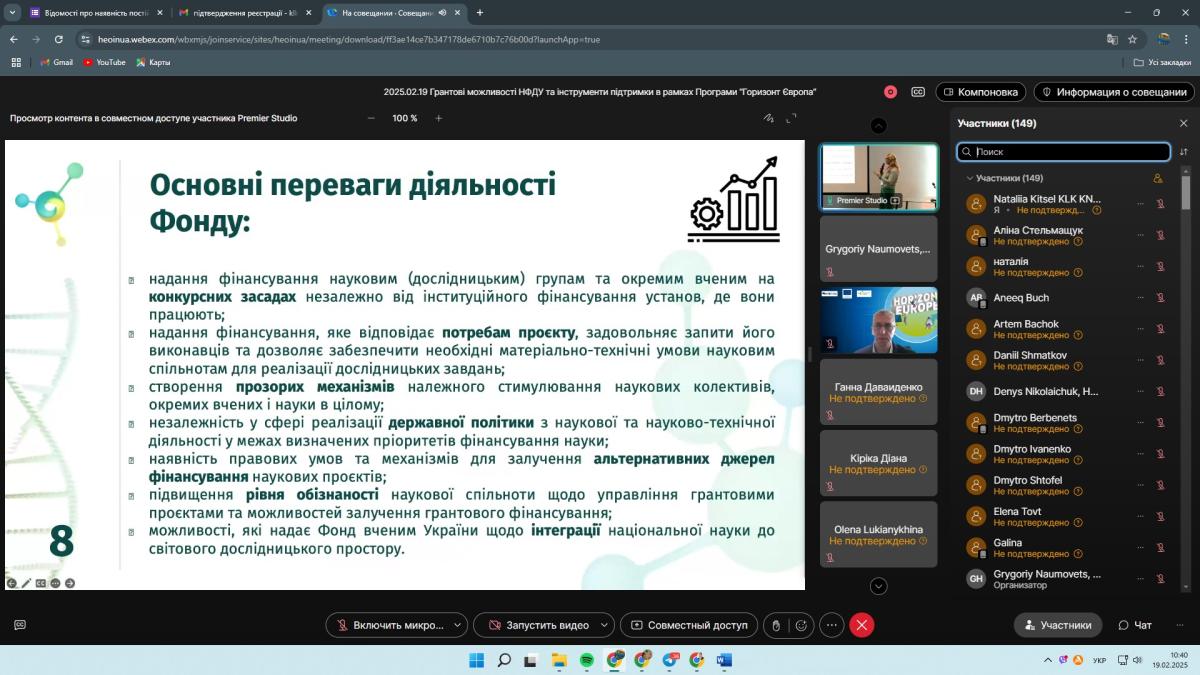 In the period between 18 and 20 February 2025, Nataliia Kitsel, the Associate Researcher of the Scientific Activity Organization Department, Svitlana Stelmakh, the specialist of the International Relations and Interuniversity Work Group, and Inna Ryshkova, the teacher of the Department of Management, Social Sciences, Humanities and Fundamental Disciplines, took part in information event ‘Grant Opportunities of the National Research Fund of Ukraine and Support Tools under the Horizon Europe Programme’. The event was held by the National Research Fund of Ukraine.