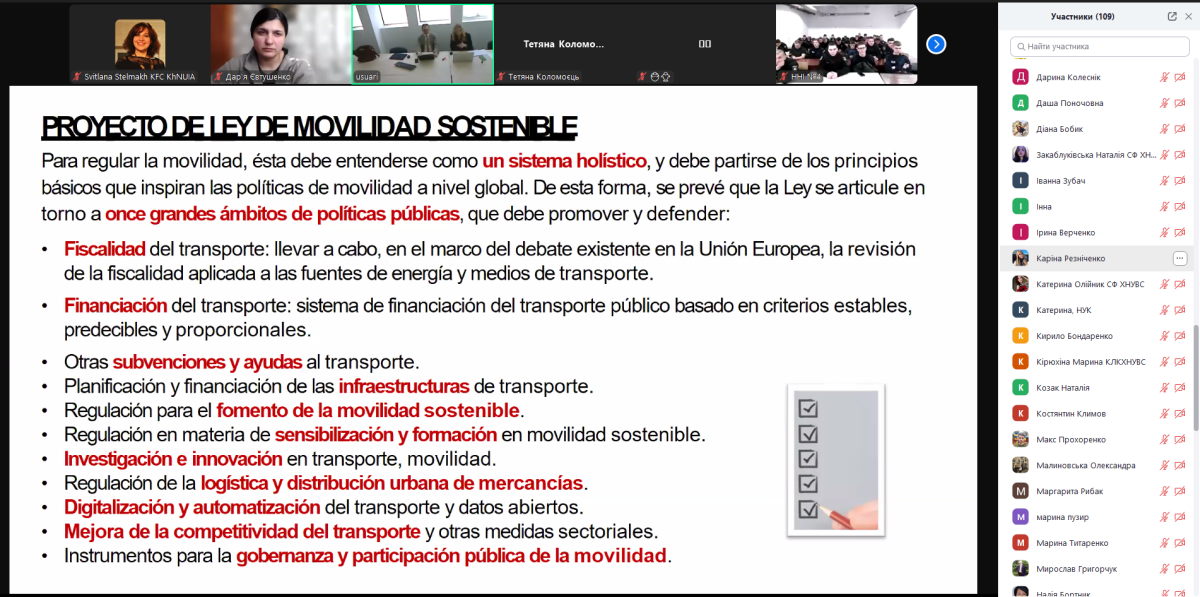 Topic of this webinar was ‘Legal Regulation of Sustainable Mobility: The Experience of Spain for Ukraine’ The webinar became an important platform for academic exchange, promoting an in-depth understanding of legal aspects related to mobility, as well as social issues and technological innovations.