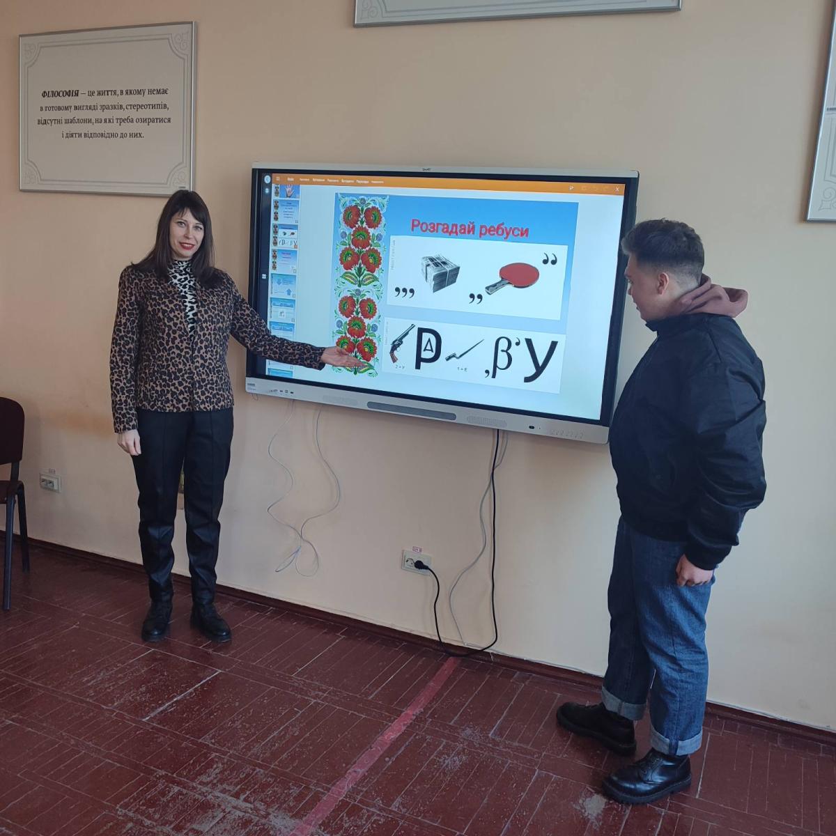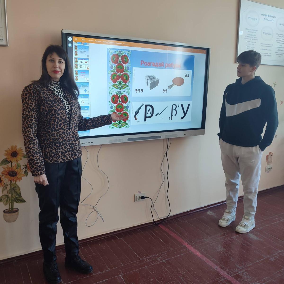 Vira Valeriivna began the lesson by announcing the topic and objective, using a puzzle to identify the key words of the lecture. Once interested, the students quickly focused on the perception of the educational material and actively engaged in the work with the slides of the presentation prepared by the teacher.