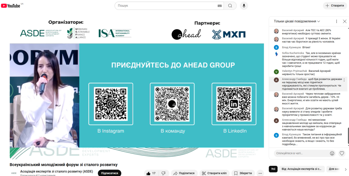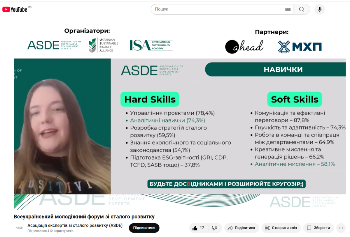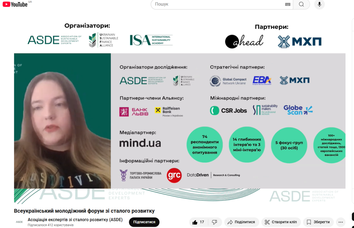 The forum has become a key point in cooperation between the youth, experts, business, financial institutions and government agencies. The main objective was to develop the youth potential by providing them with practical knowledge, skills and new opportunities, including internships, employment and support for their initiatives to integrate into the green recovery of Ukraine.
