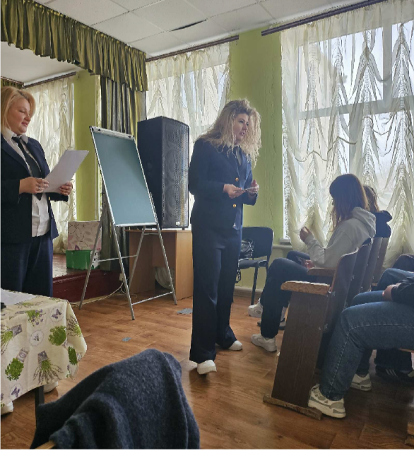 Representatives of Kremenchuk Flight College of KhNUIA are actively conducting career guidance work among future school graduates of Poltava oblast. On 10 April 2025, the Head of the Department of Management, Social Sciences, Humanities and Fundamental Disciplines Maryna Kiriukhina and the teacher of the Department Maryna Puzyr visited the students of Hlobyne, namely lyceums No. 1 and No. 5.