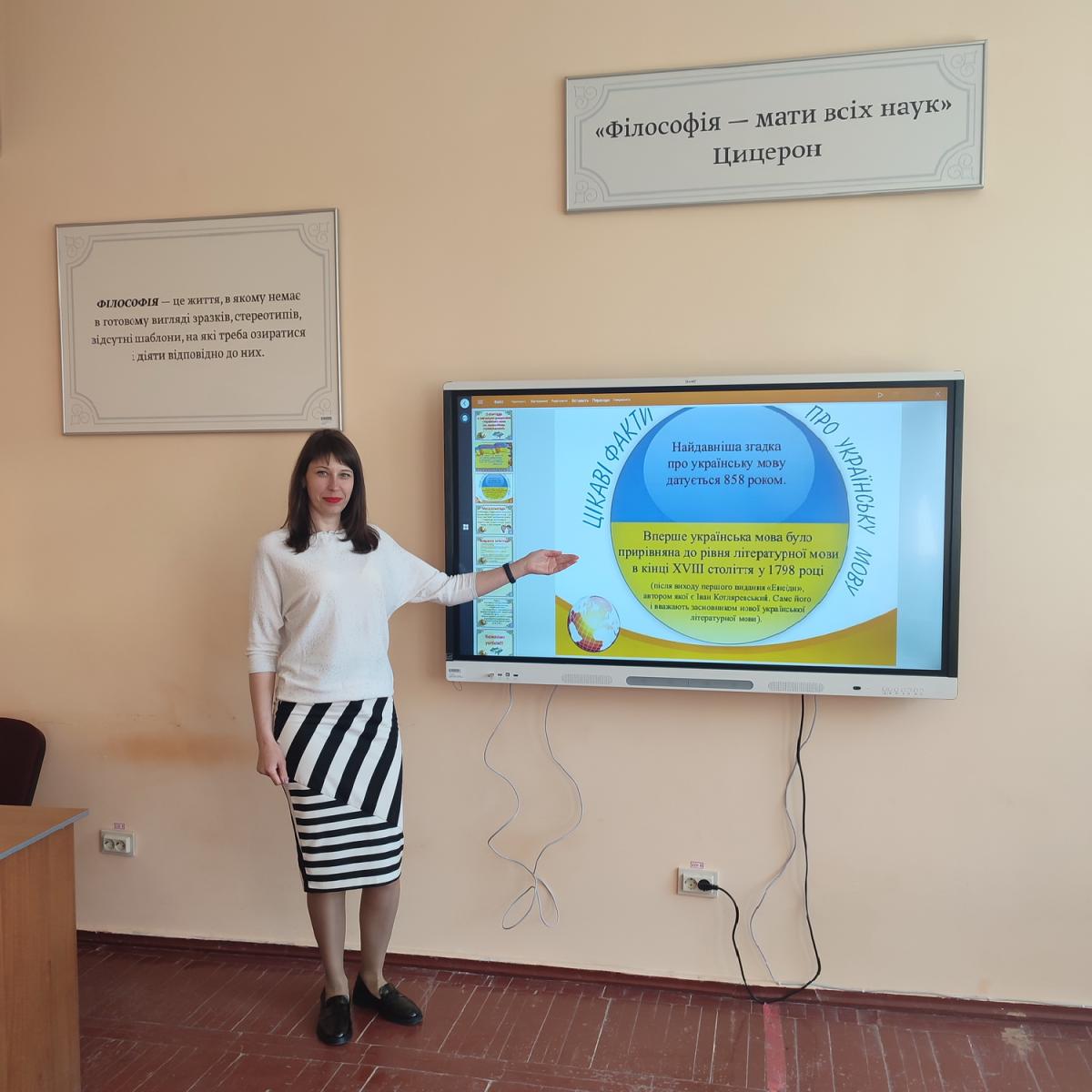 The event began with the welcoming words of the organiser and the jury’s member of the Olympiad Vira Siora, who pointed out objective and tasks for the event, using a quote by the prominent Ukrainian writer Maksym Rylskyi as an epigraph: ‘I love you, I love you so much, my singing Ukrainian language!’ The applicants were invited to recall poetry and listen to interesting facts about the Ukrainian language.