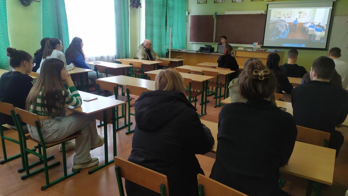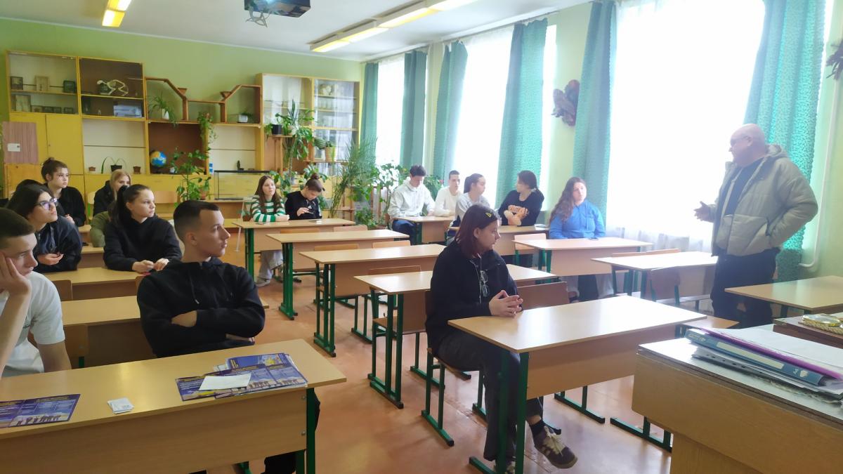 On 01.04.2025, Lyceum No. 1 of Kobeliaky town, Poltava region, hospitably received representatives of Kremenchuk Flight College of Kharkiv National University of Internal Affairs. The head of the department Oleh Bazhan and the specialist in career guidance work Tetiana Samchishyna introduced the 11th grade graduates to the glorious history of the aviation industry educational institution, which is a leader in the training and retraining of pilots and aviation technical personnel. The students watched a video about the college and learnt about the opportunity to study free of charge in perspective aviation specialities. The students were also interested in information about training on a state-funded basis and guaranteed paid internships and subsequent employment.