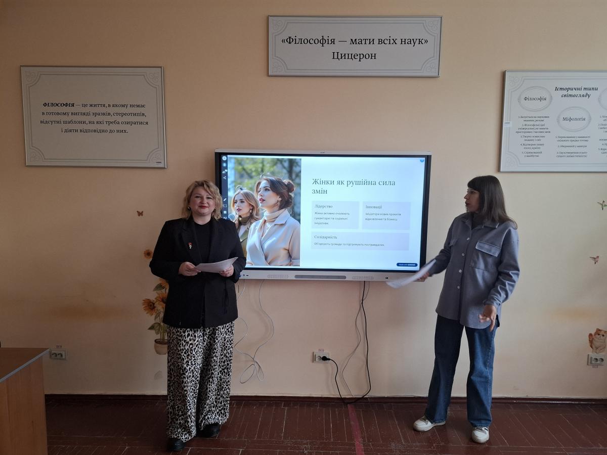 On 20 May 2025, a round table discussion was held with the TEdsr 24-1b study group on the topic ‘The Future After the War: The Role of Women in the Reconstruction of Ukraine.’ The event was attended by the head of the Department of Management, Social Sciences, Humanities and Fundamental Disciplines, Marina Kiriukhina, teachers of the Department, Olga Khomiak and Vira Siora, and higher education students. The purpose of the round table was to discuss the potential role of women in the post-war reconstruction of Ukraine in various spheres of social life.