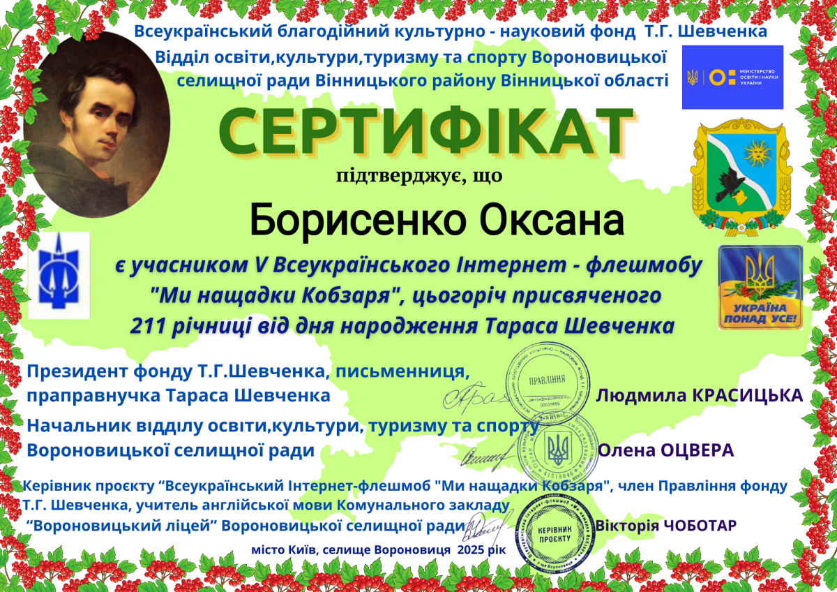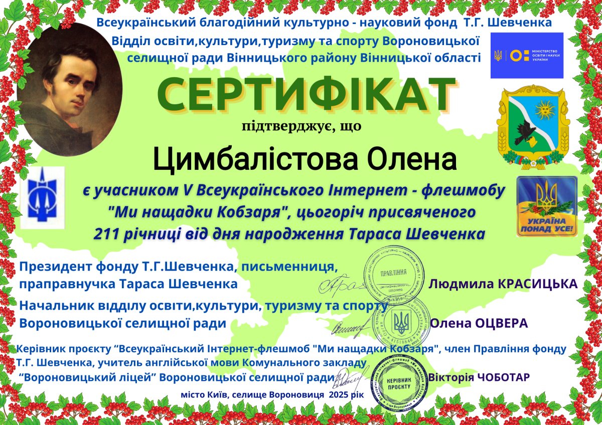 In March 2025, Ukraine celebrated the 211th anniversary of the birth of Taras Shevchenko, the great Ukrainian poet, artist and public activist. On this occasion, the V All-Ukrainian Internet Flashmob ‘We Are the Kobzar’s Heirs’ was held, which this year was dedicated to the 185th anniversary of the publication of the first edition of Taras Shevchenko’s Kobzar.