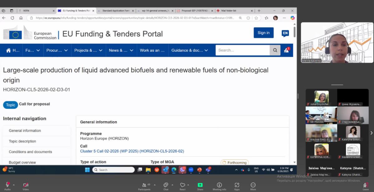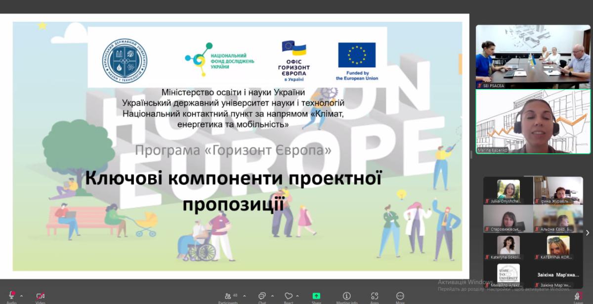The event was organised by the National Contact Point for Climate, Energy and Mobility of the Ukrainian State University of Science and Technology, with the support of the Dnipro City Council and the participation of speakers from the Horizon Europe Office in Ukraine. The training was held in a hybrid format and became a platform for the exchange of knowledge and experience in the field of fundraising for scientific and educational projects.
