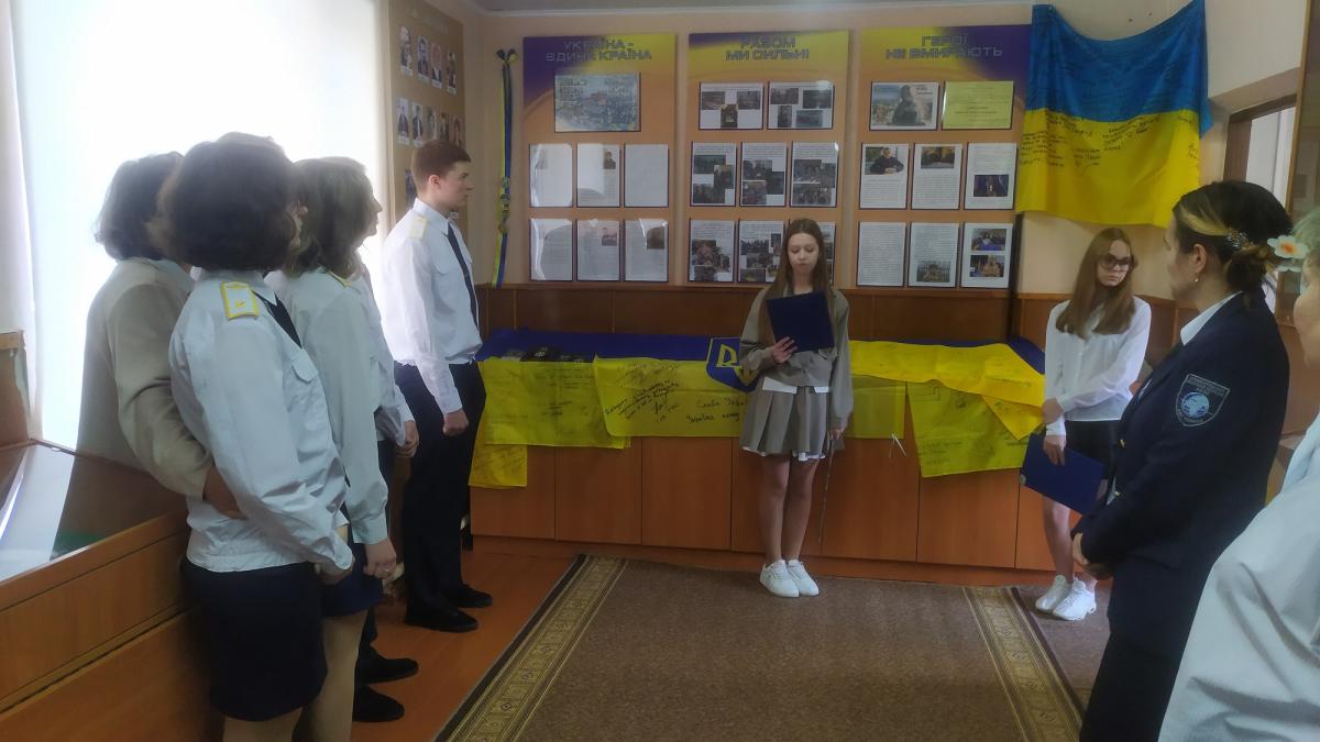On the eve of Defenders of Ukraine Day, students of the Kremenchuk Flight College of the Kharkiv National University of Internal Affairs held a meeting with representatives of the student council of Poltava Secondary School No. 20 under the slogan ‘Heroes Never Die.’
