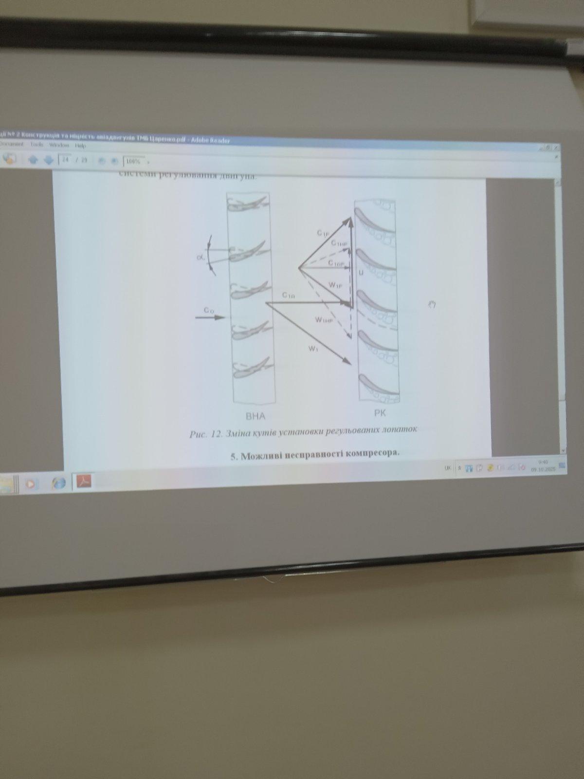On October 16, 2025, Andrii Tsarenko, senior teacher of the Air Transport Department of the Kremenchuk Flight College of the KhNUIA, held a scientific seminar on ‘Features of the operation of helicopter gas turbine engine compressors in different climatic conditions’ for students of educational and professional programs ‘Air Navigation’ and ‘Maintenance and Repair of Aircraft and Aircraft Engines,’ majoring in 272 Air Transport.