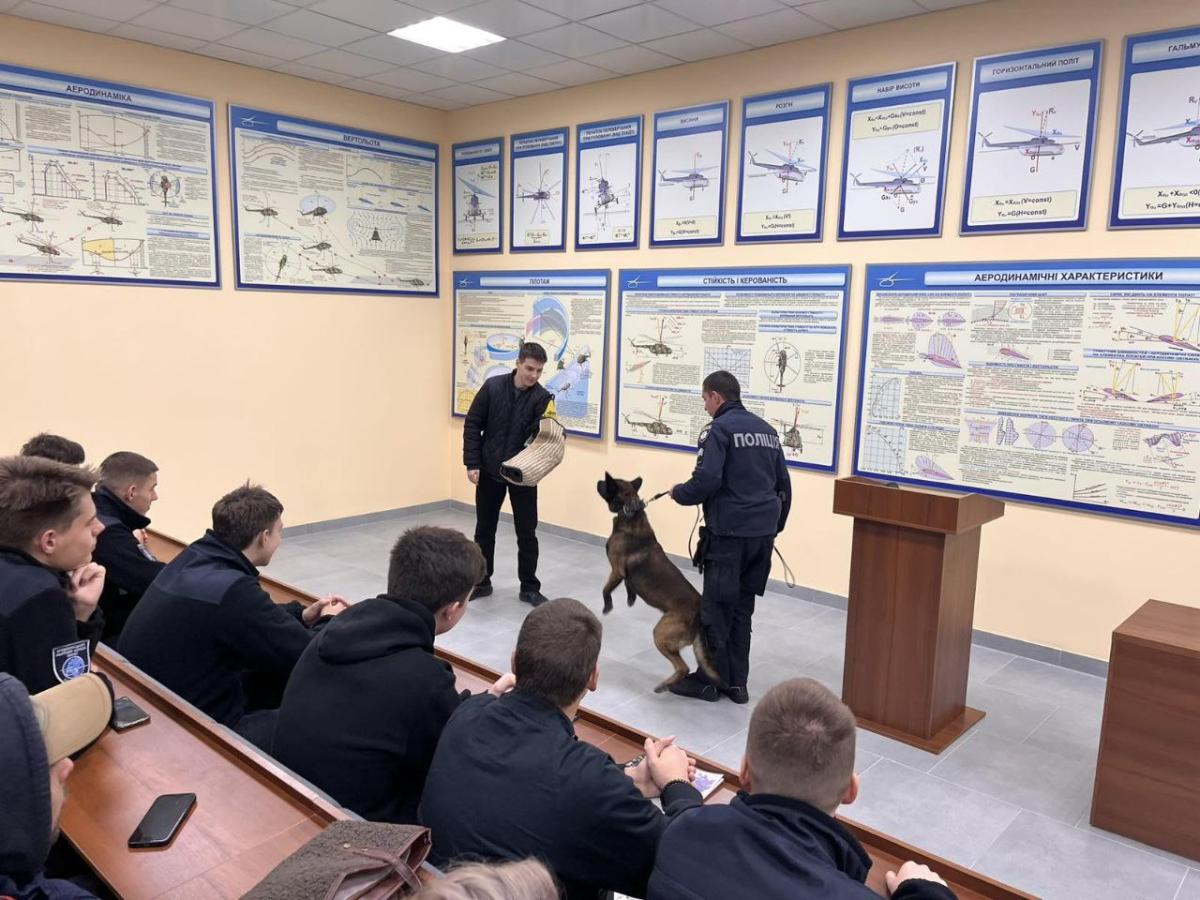 On 20 October 2025, students at the Kremenchuk Flight College of the Kharkiv National University of Internal Affairs had the opportunity to receive mental health support through an unusual but very effective method: communicating with a service dog.