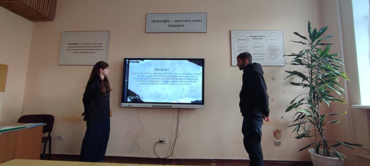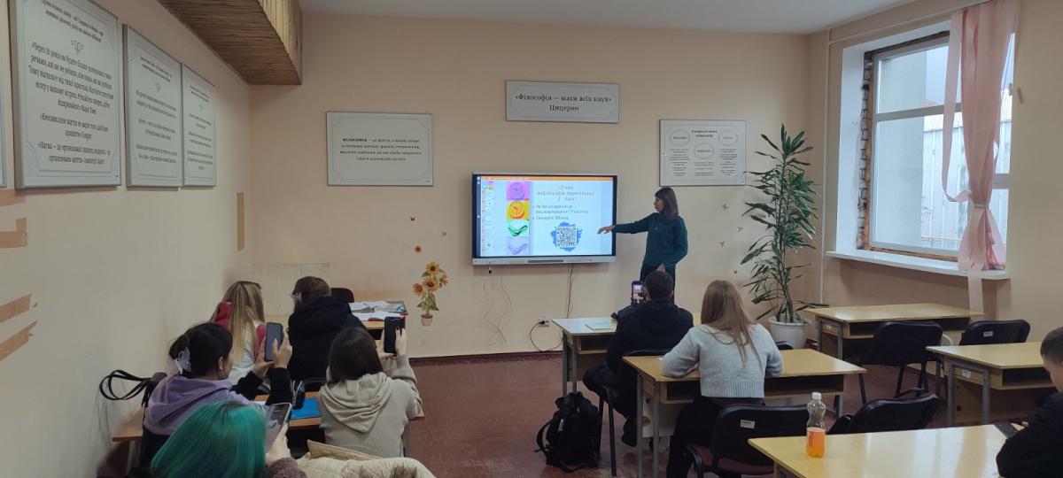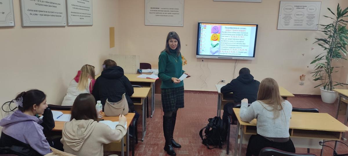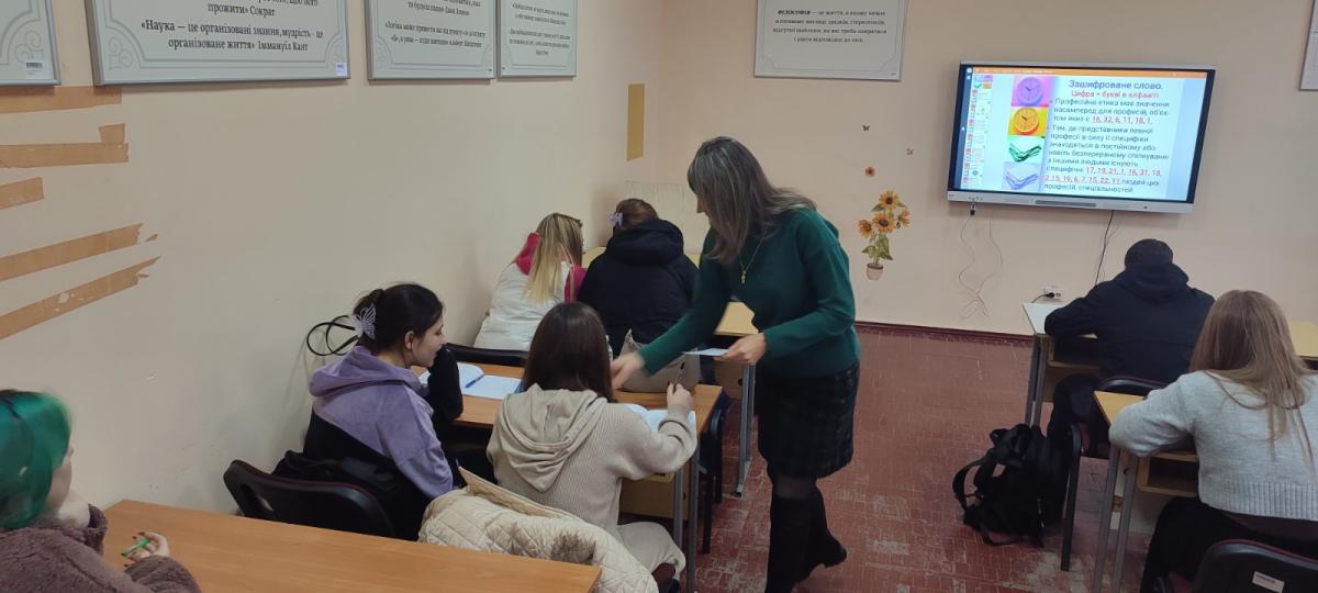 Vira Siora began the lesson by announcing the topic and objective, using a puzzle to identify the key words of the practical lesson’s theme. Once interested, the students quickly focused on consolidating the educational material and actively engaged in the work with the slides of the presentation prepared by the teacher.