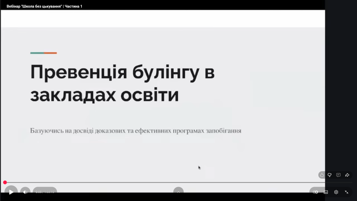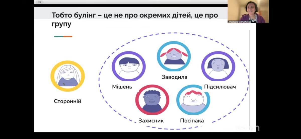 The leading psychologist of the Psychological Support Group of the Human Resources Department took part in a two-day webinar ‘School without Bullying’ dedicated to the topic of combating bullying in the educational environment, which was broadcast on the YouTube channel of the Ministry of Education and Science of Ukraine.