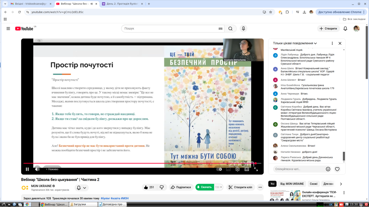 Particular interest was aroused by the part of the webinar devoted to creating a space of trust in educational institutions and forming a healthy school culture and climate that prevents violence and humiliation.