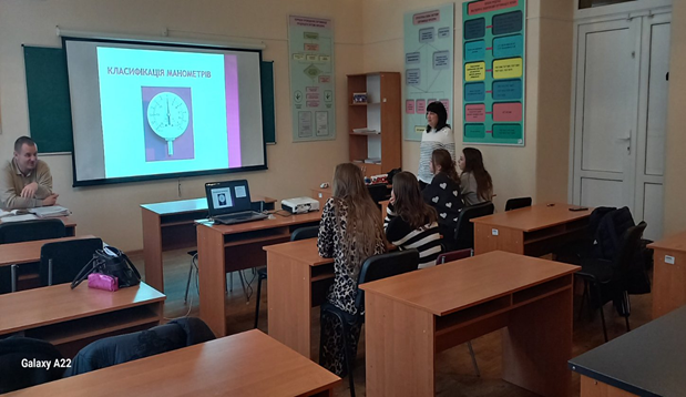 Volodymyr Sych, head of the airfield’s fuel and lubricants service, was invited to conduct the binary class. During the class, teacher Olena Davitaia gave a lecture on ‘Process Control Devices.’