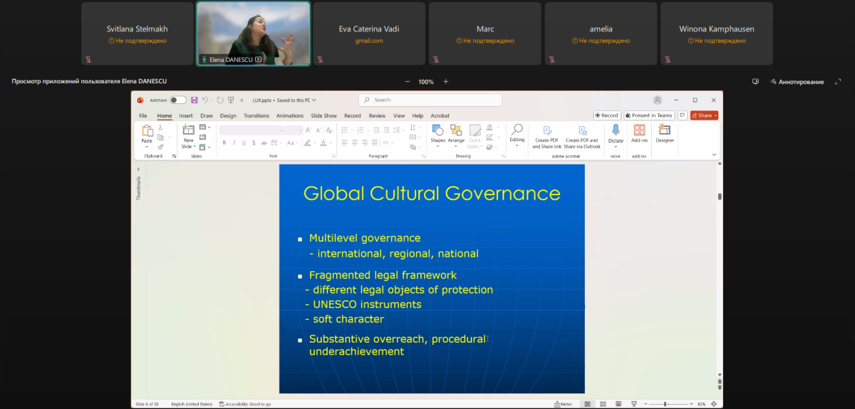 On 1 December 2025, Svitlana STELMAKH, a specialist in International Relations and Interuniversity Work Group, took part in the Luxembourg University event “Cultural Heritage and Resilience in International Law”, which was held as part of the WOLS 2025 lecture series. The event was held under the aegis of the Robert Schuman Centre for Advanced Studies and the European University Institute (EUI Florence).