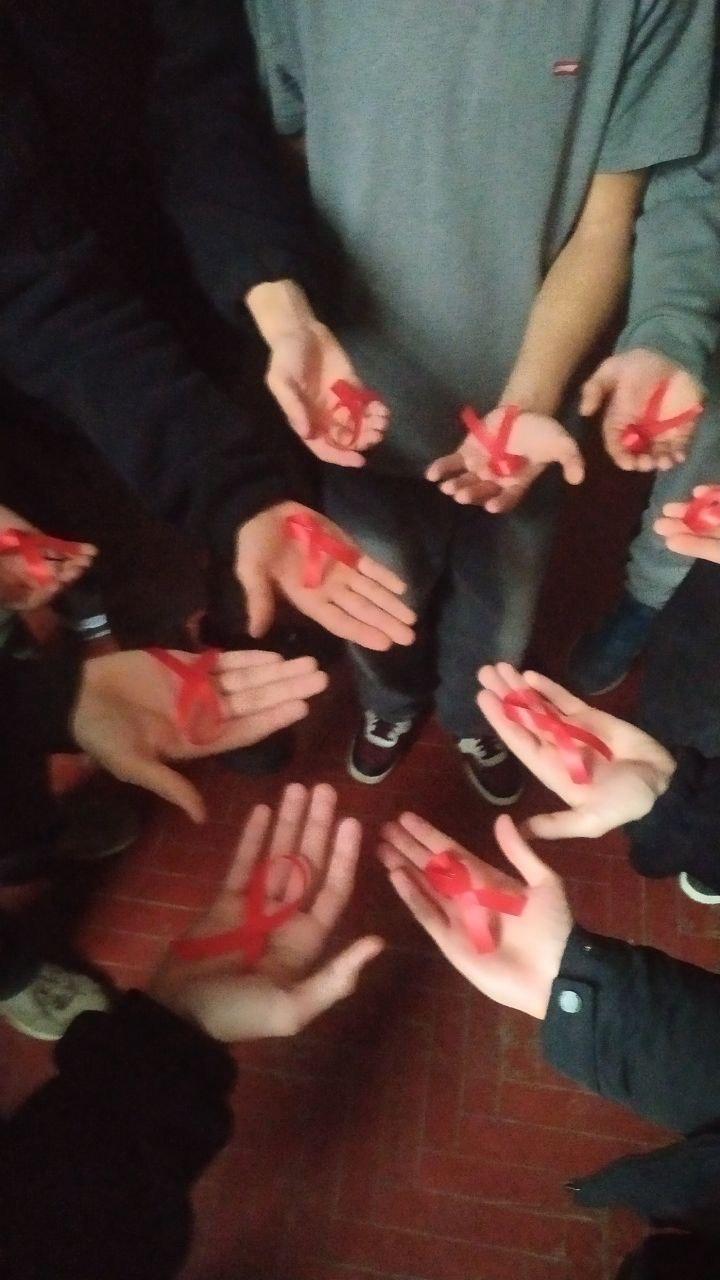 As a symbol of support for HIV-infected people, participants attached red ribbons to their clothes. Birth control, one of the key elements of HIV prevention, was also distributed.