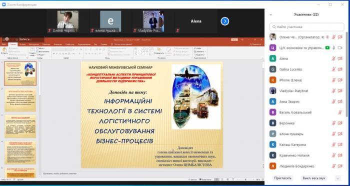 Kremenchuk Flight College of Kharkiv National University of Internal Affairs remotely hosted a scientific interuniversity seminar "Conceptual aspects of the basic logistics methodology of enterprise management", organized by the cycle commission of economics and management of Kremenchuk Flight College of Kharkiv National University of Internal Affairs together with National Aviation University (Kyiv) and the National University of Pharmacy (Kharkiv). The event was held remotely using the Zoom application.