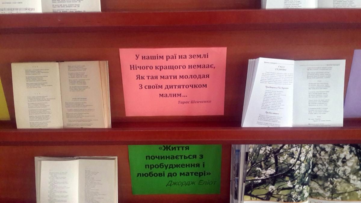 Виставка-огляд "МАТИ - її величність, в її обіймах вічність". До Дня матері