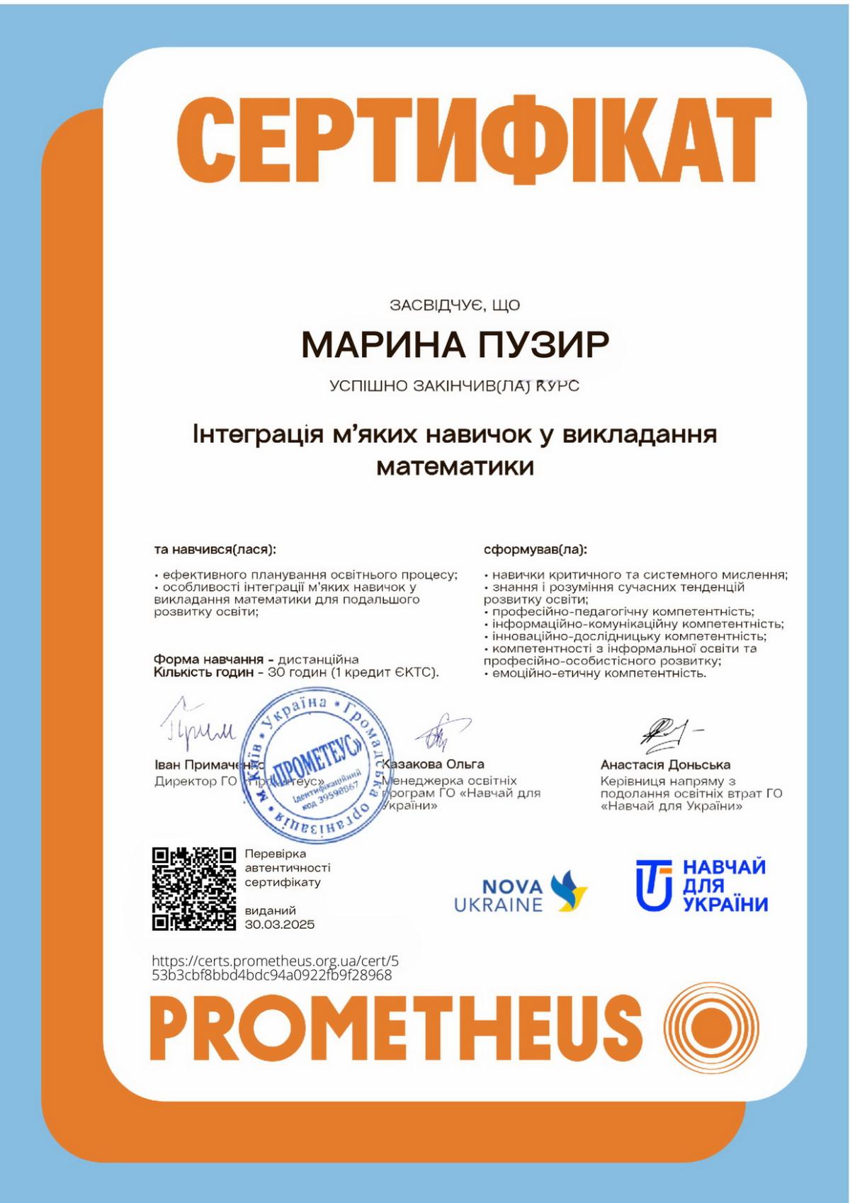 Пузир Марина Сергіївна