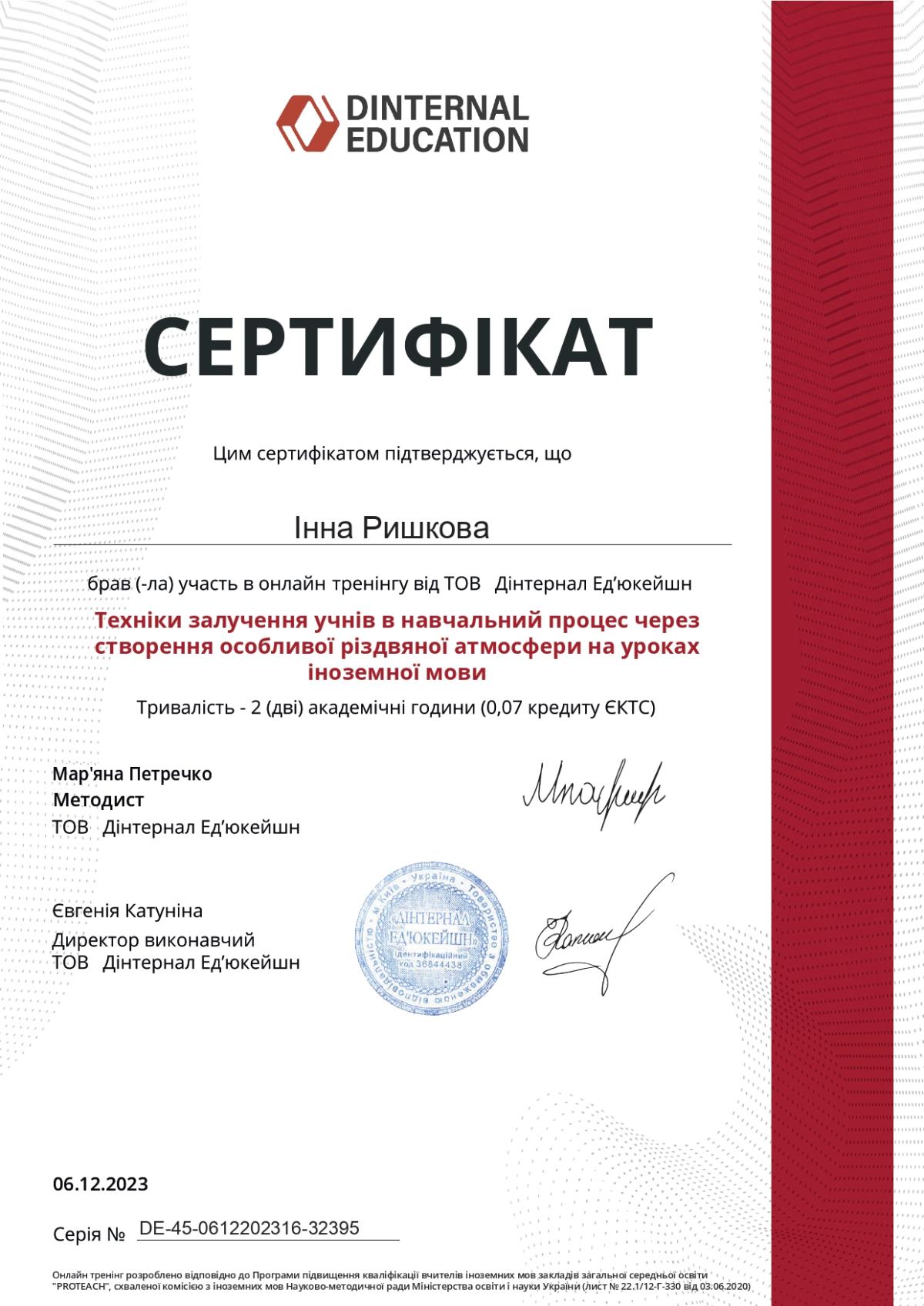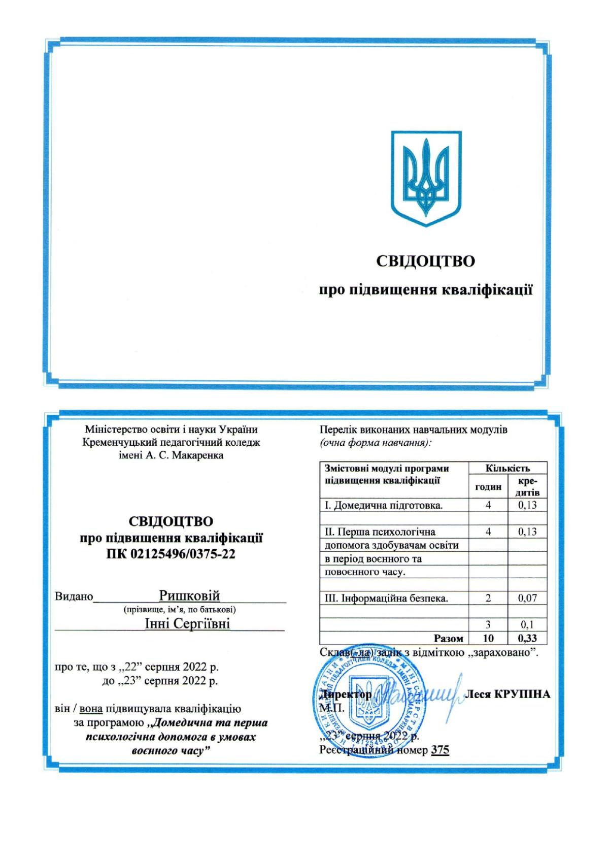 Ришкова Інна Сергіївна