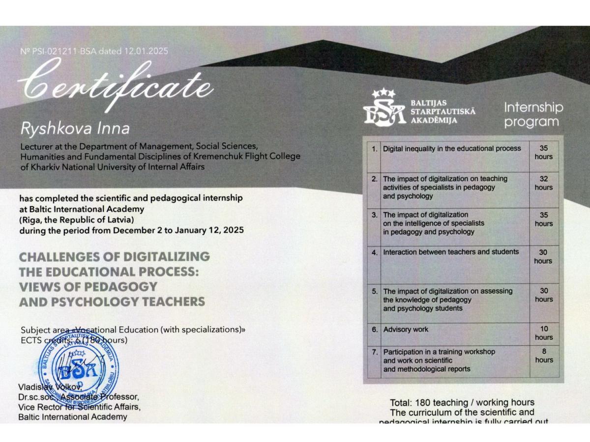 Рейтинг педагогічних працівників КЛК ХНУВС