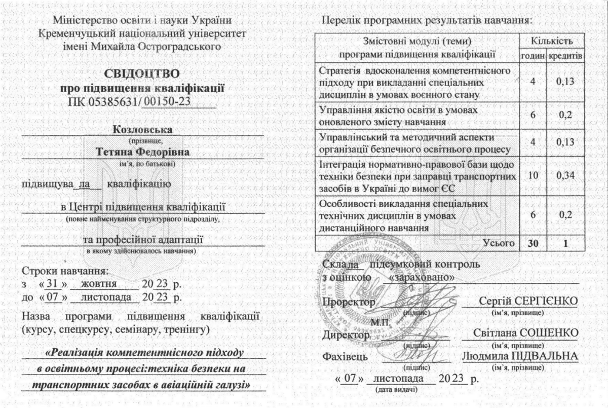 Рейтинг педагогічних працівників КЛК ХНУВС