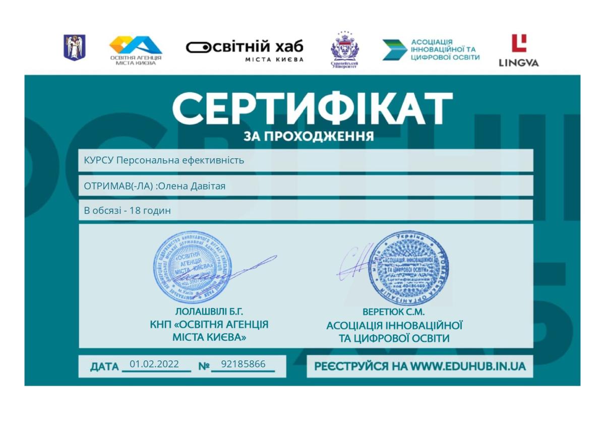 Давітая Олена Вікторівна