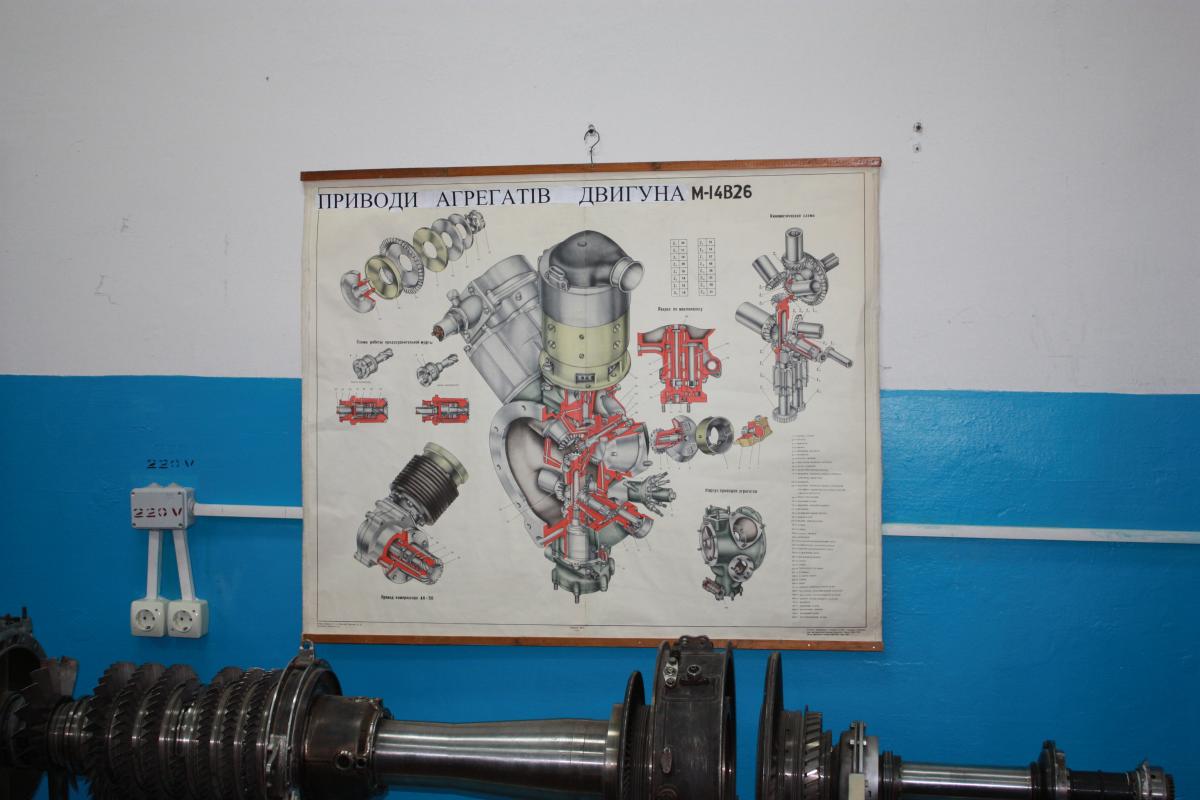 - проведення всіх видів навчальних занять з використанням демонстраційних матеріалів (макети вузлів і агрегатів авіаційних двигунів, стенди систем двигунів, презентації, схеми, тощо) з дисциплін: «Поршневі авіаційні двигуни», «Теорія теплових двигунів», «Конструкція авіатехніки», «Модуль 16. Поршневий двигун» згідно вимог Part-147, «Експлуатація двигуна АШ-62ИР».