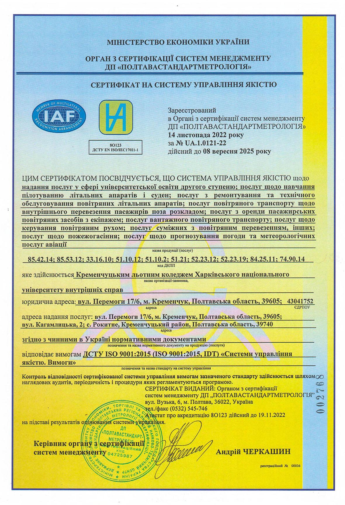 • забезпечення відповідності системи управління якістю вимогам стандарту ДСТУ ISO 9001:2015;