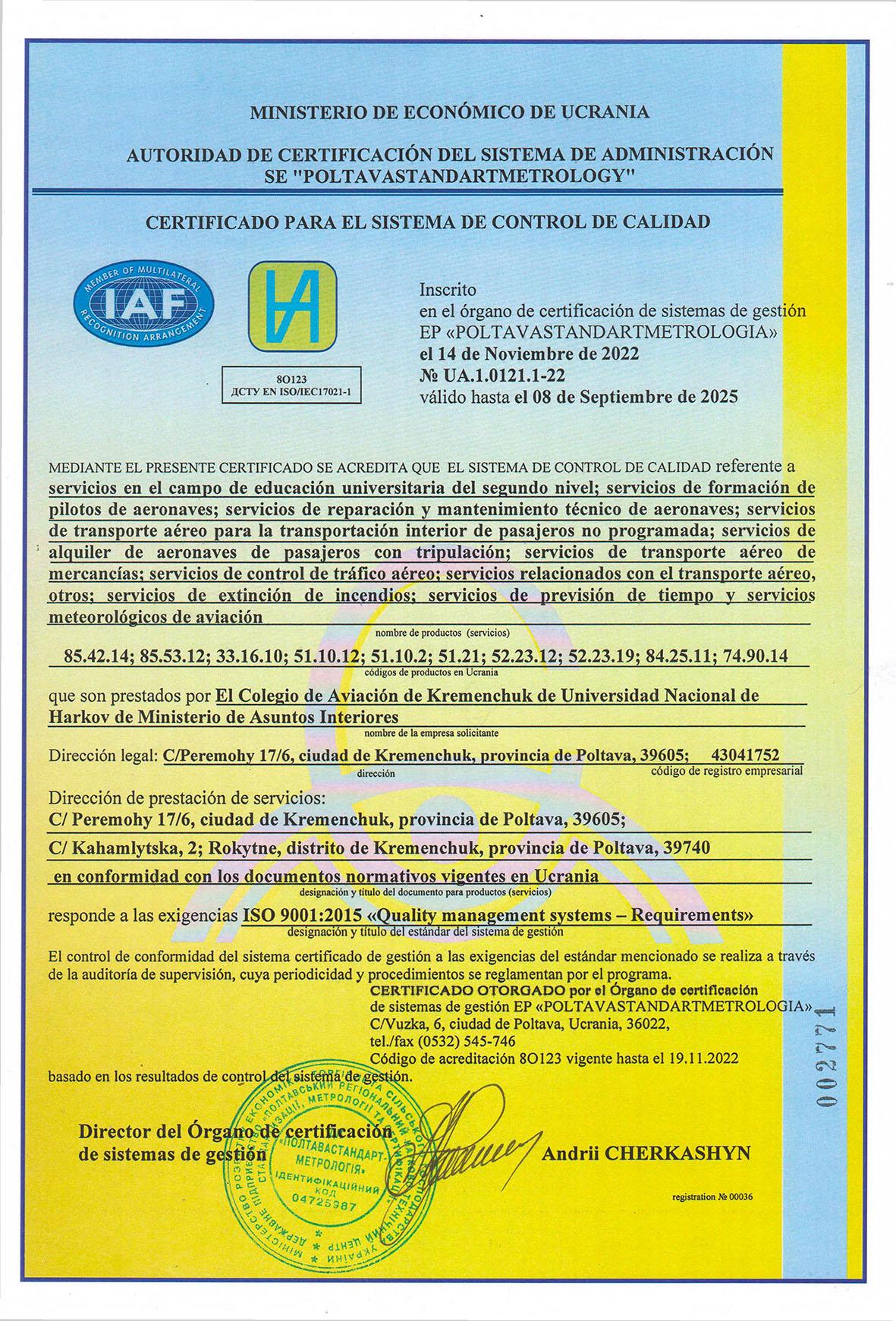 За вимогою стандарту ДСТУ ISO 9001 в коледжі призначений керівник з якості - інженер з якості ВУЯ (авіаційна складова) Терещенко Вікторія Олександрівна