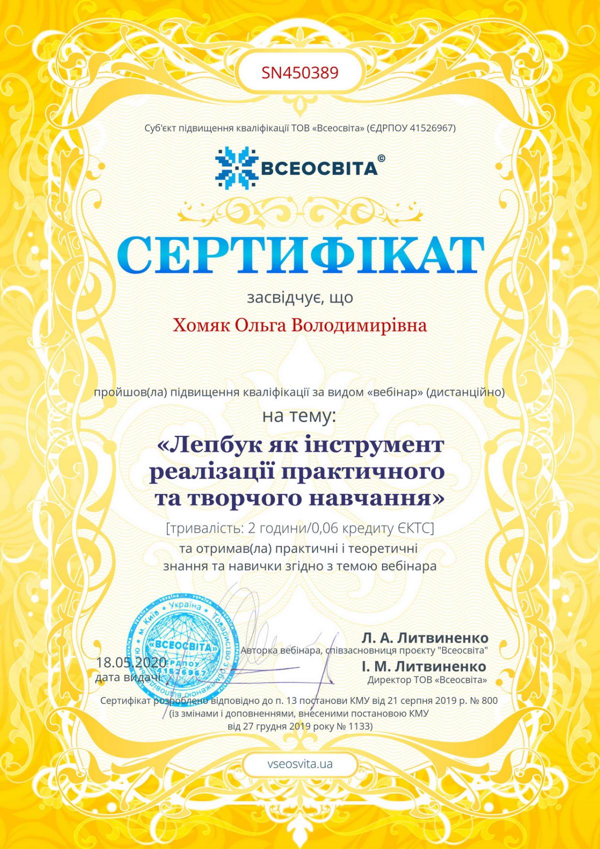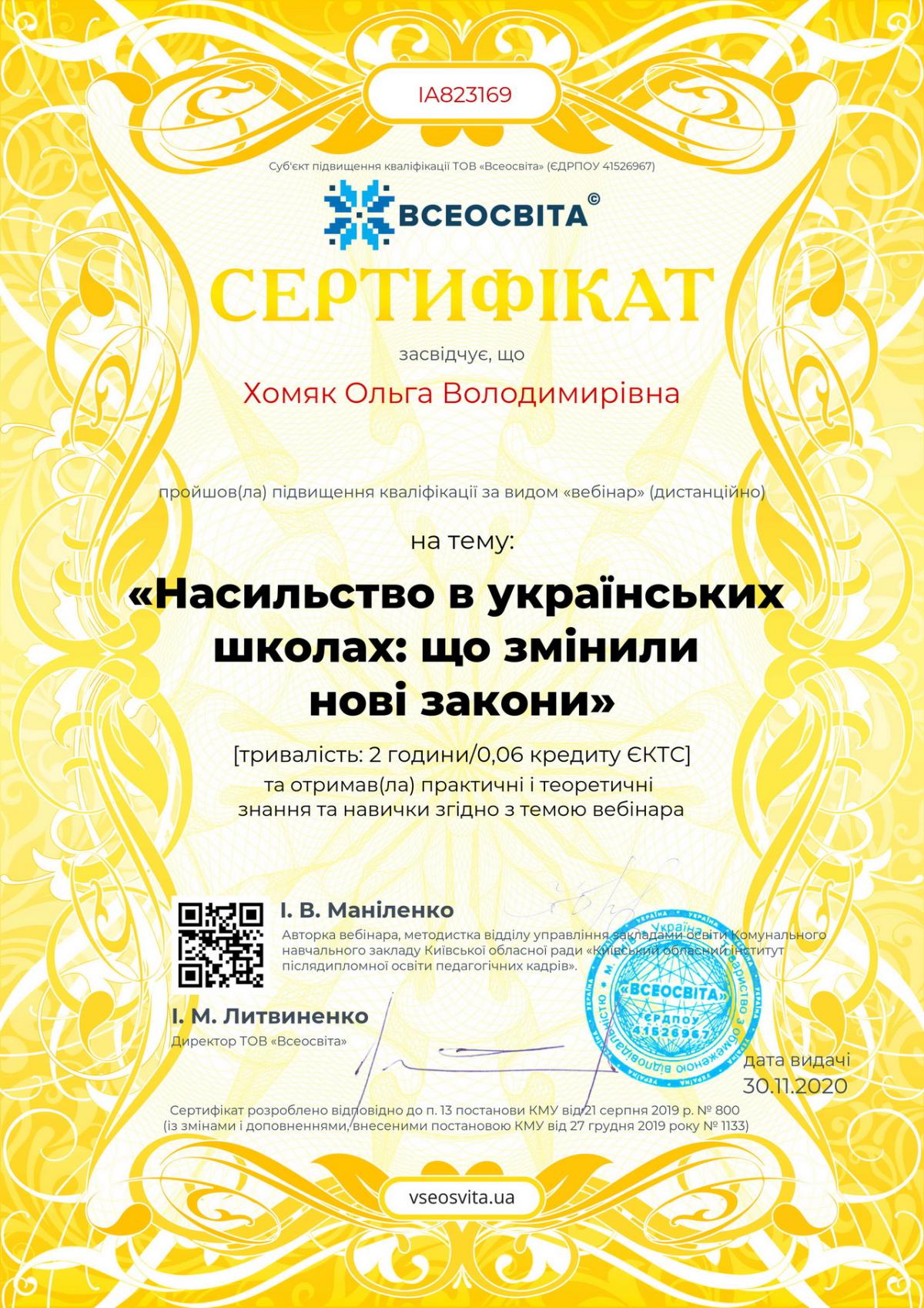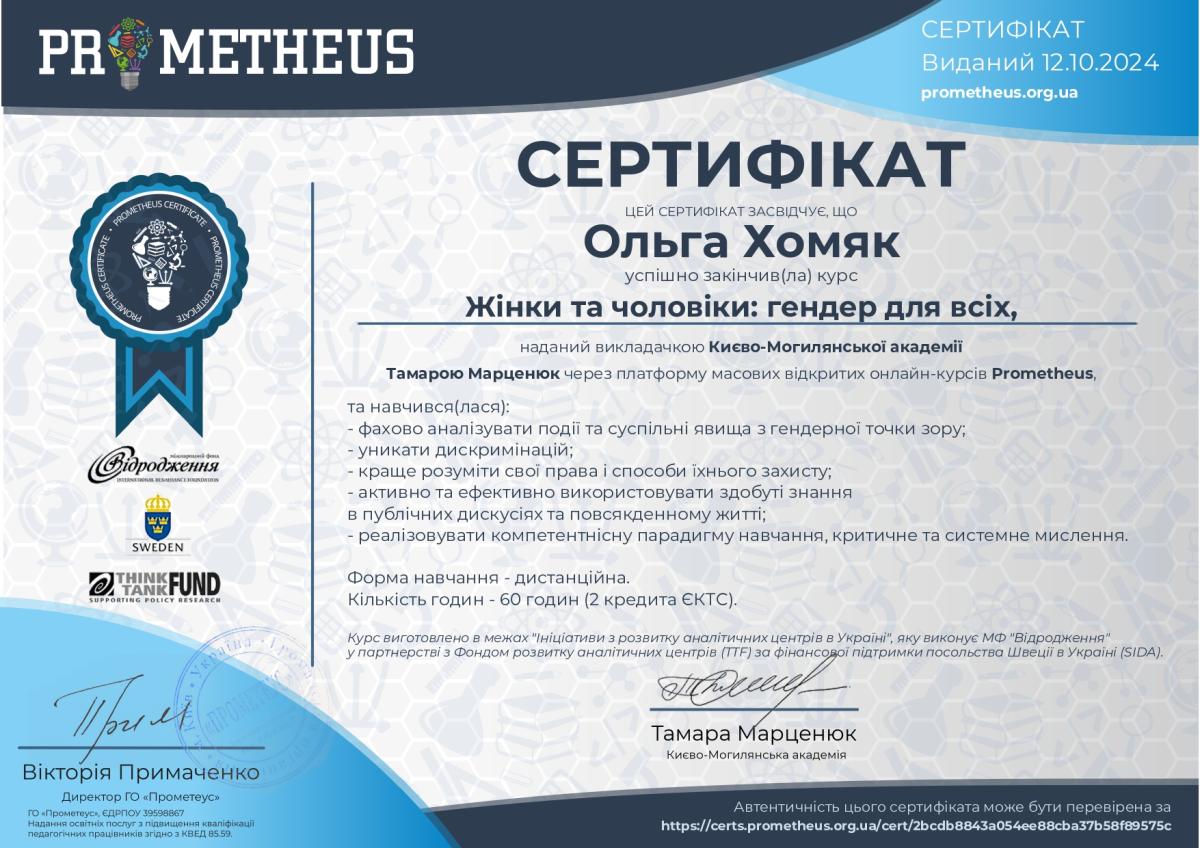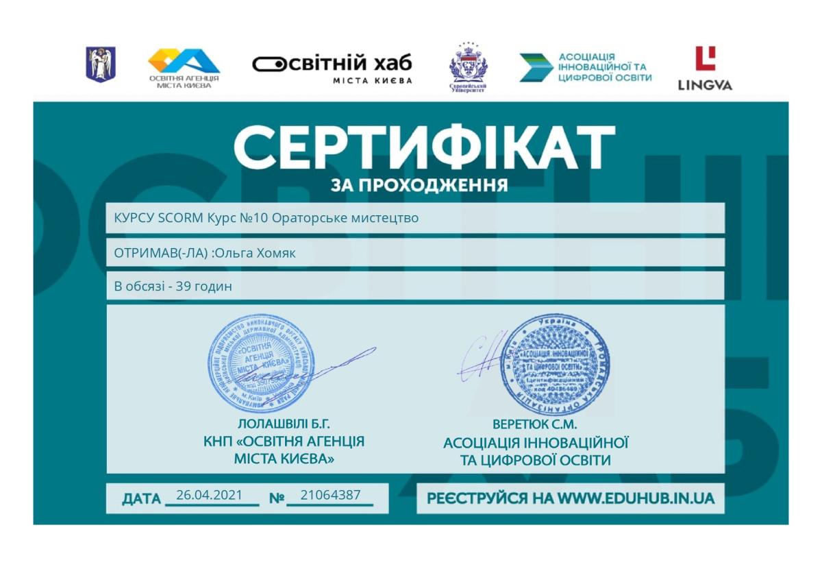 Хомяк Ольга Володимирівна