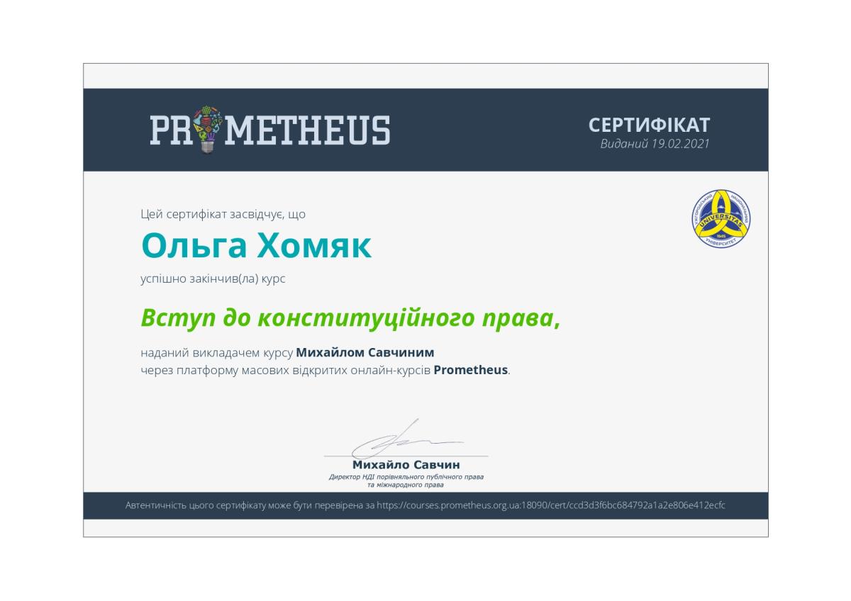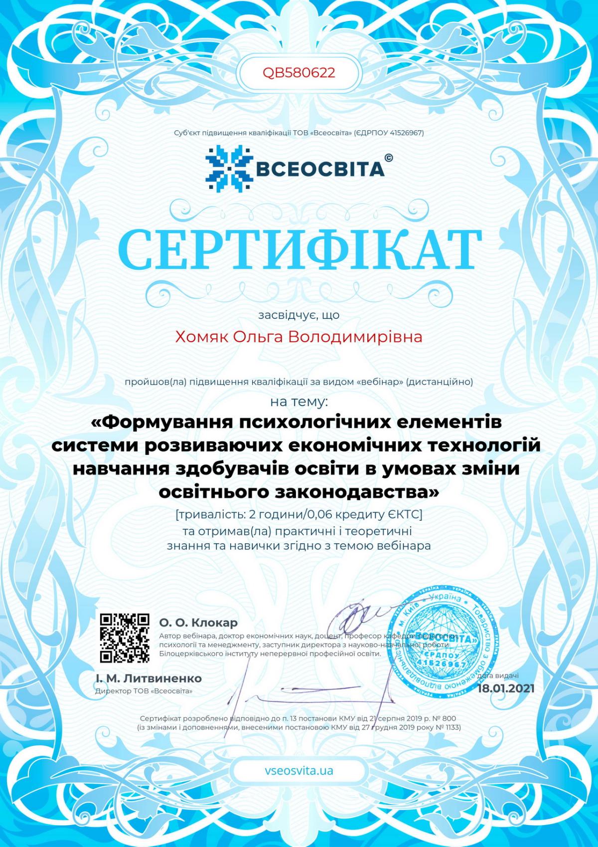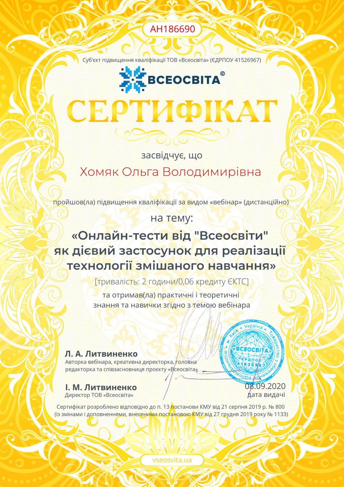 Хомяк Ольга Володимирівна