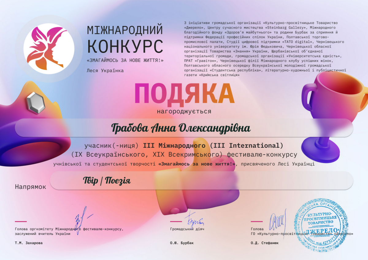 Наукова активність і досягнення здобувачів / здобувачок вищої освіти