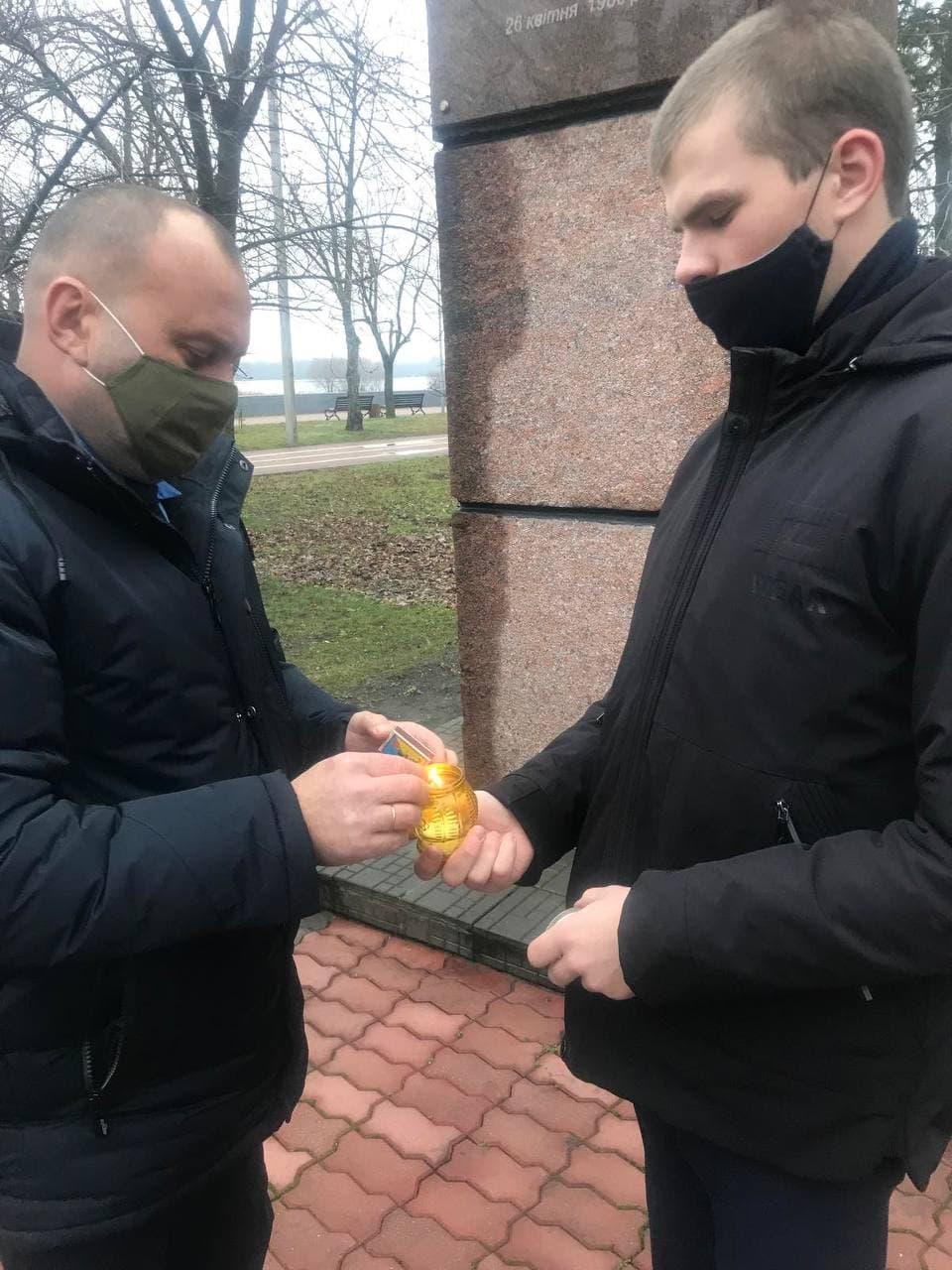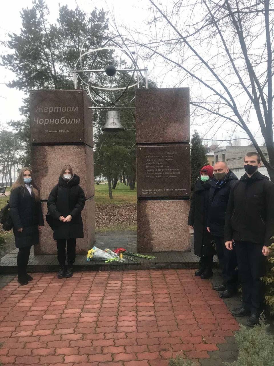 Учасники заходу запалили свічку, поклали квіти та схилили голови біля пам’ятного знаку «Жертвам Чорнобиля». До Дня вшанування ліквідаторів наслідків аварії на ЧАЕС подібні заходи вдаштовують щорічно, саме 14 грудня.