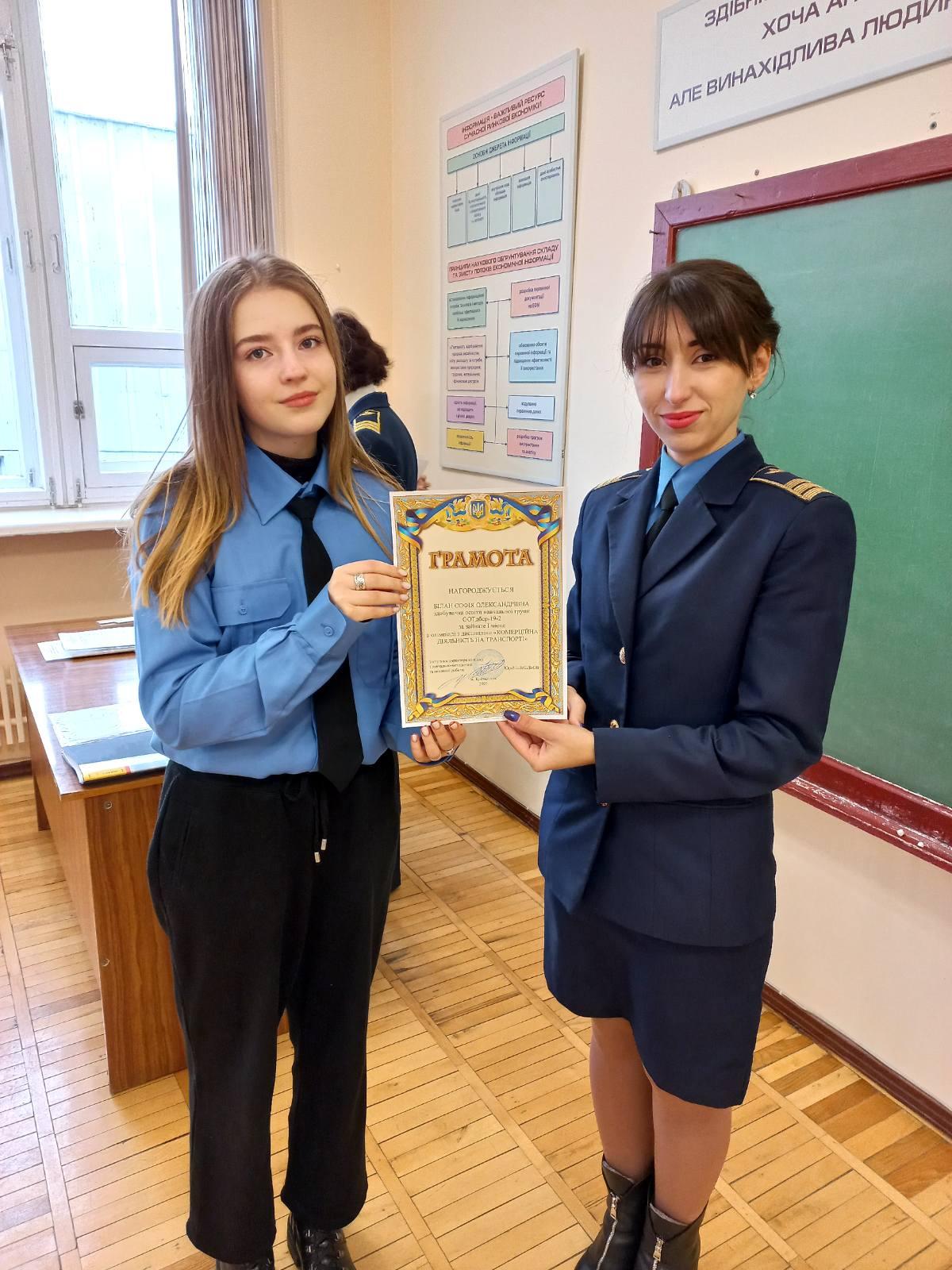 III місце – Кушка Богдана Миколаївна (навчальна група ООТдбср-19-1).