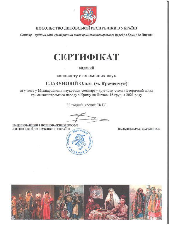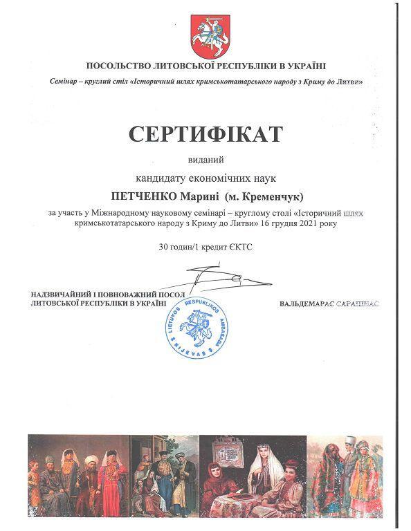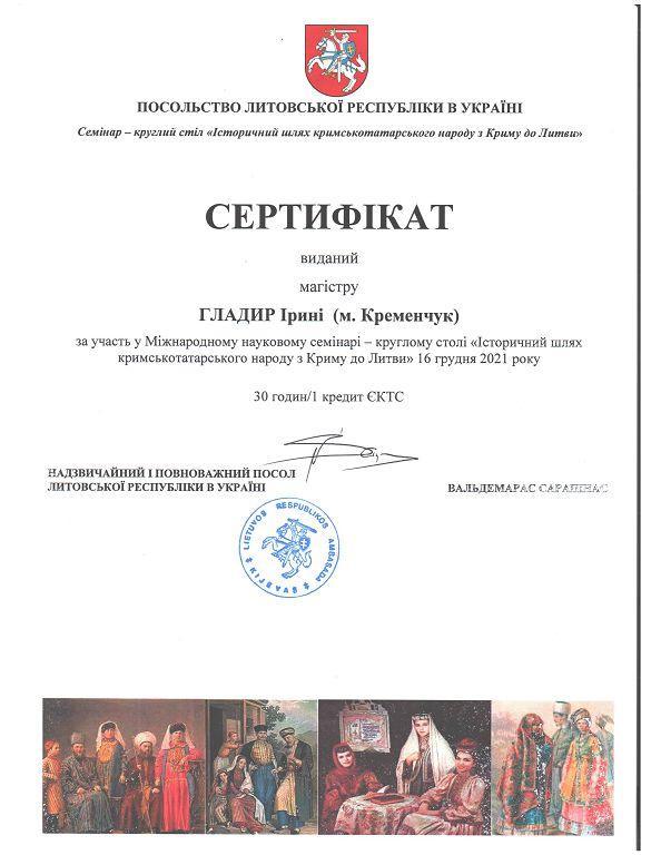 Представниці Кременчуцького льотного коледжу Харківського національного університету внутрішніх справ – відповідальна з гендерних питань Марина Петченко, начальниця відділу міжнародних відносин та міжвузівської роботи Ірина Гладирь, наукова співробітниця відділу організації наукової роботи та гендерних питань Ольга Глазунова, фахівчиня відділу міжнародних відносин та міжвузівської роботи Світлана Стельмах взяли участь у Міжнародному науковому семінарі-круглому столі «Історичний шлях кримськотатарського народу з Криму до Литви», що проводився в Міжнародному інформаційно-контактному центрі імені князя Вітовта Інституту розвитку Кременчука. Модератором заходу виступив заступник директора Інституту розвитку Кременчука Андрій Мельник.