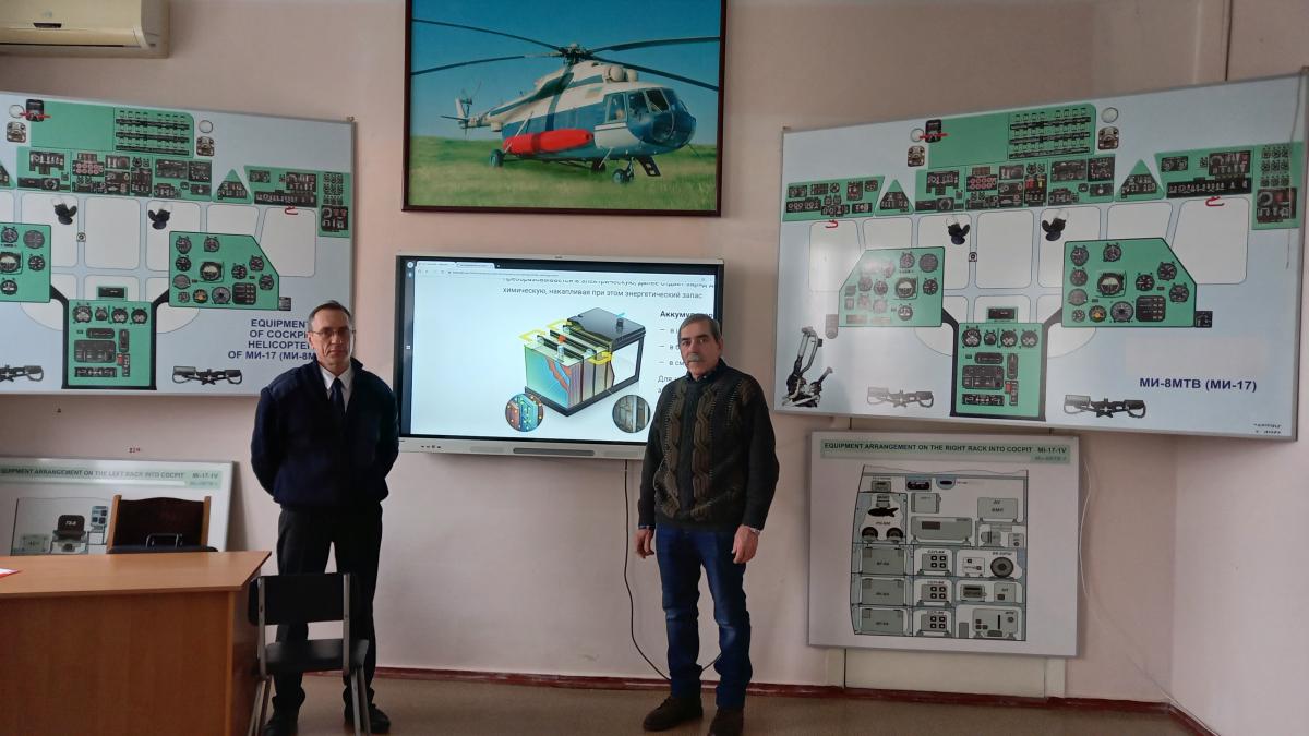 Викладач циклової комісії авіаційного і радіоелектронного обладнання Сергій Голованов та акумуляторник групи лабораторної перевірки і ремонту приладів, електро- та радіообладнання Авіаційно-технічної бази КЛК ХНУВС Василь Ткачук провели для здобувачів освіти 3 курсу бінарне заняття з навчальної дисципліни «Електротехніка та електроніка» за темою «Хімічні джерела енергії».