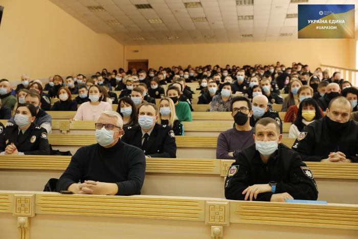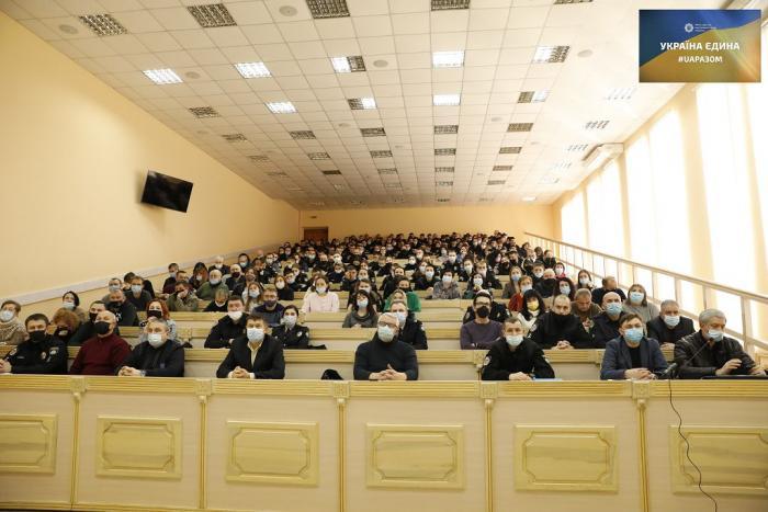 До учасників форуму звернувся член-кореспондент Національної академії правових наук України, доктор юридичних наук, професор, заслужений юрист України, ректор університету генерал поліції третього рангу Валерій Сокуренко.  Він зазначив, що сьогодні, як ніколи, важливо єднатися, бути згуртованими й сумлінно нести службу: «Керівництвом держави багато робиться для зміцнення захисту України, щоб кожен громадянин відчував себе у безпеці, не піддавався на панічні настрої та провокації. Ми – сильні, спокійні, упевнені в собі. Ми – разом. Україна – єдина».