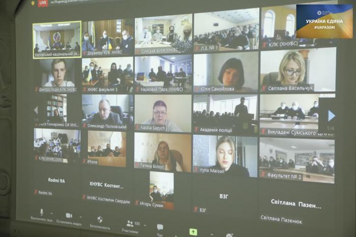 «Міст Єдності – Україна Єдина», що пройшов в онлайн-форматі, став об’єднуючою платформою для всіх структурних підрозділів Харківського національного університету внутрішніх справ – головної бази вишу, Сумської філії та Кременчуцького льотного коледжу. У заході взяли участь представники керівного та науково-педагогічного складу університету, декани факультетів, керівники структурних підрозділів,  здобувачі освіти, слухачі інституту післядипломної освіти, представники курсантсько-студентського самоврядування, члени Харківського обласного осередку Національної спілки журналістів України. Онлайн-захід проходив на кількох локаціях одночасно в університеті та дистанційно у форматі Ютуб-трансляції і зібрав понад двотисячну аудиторію.