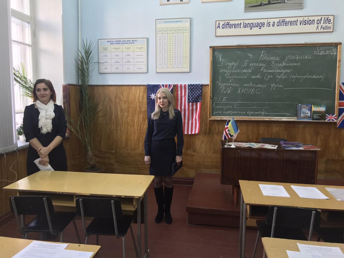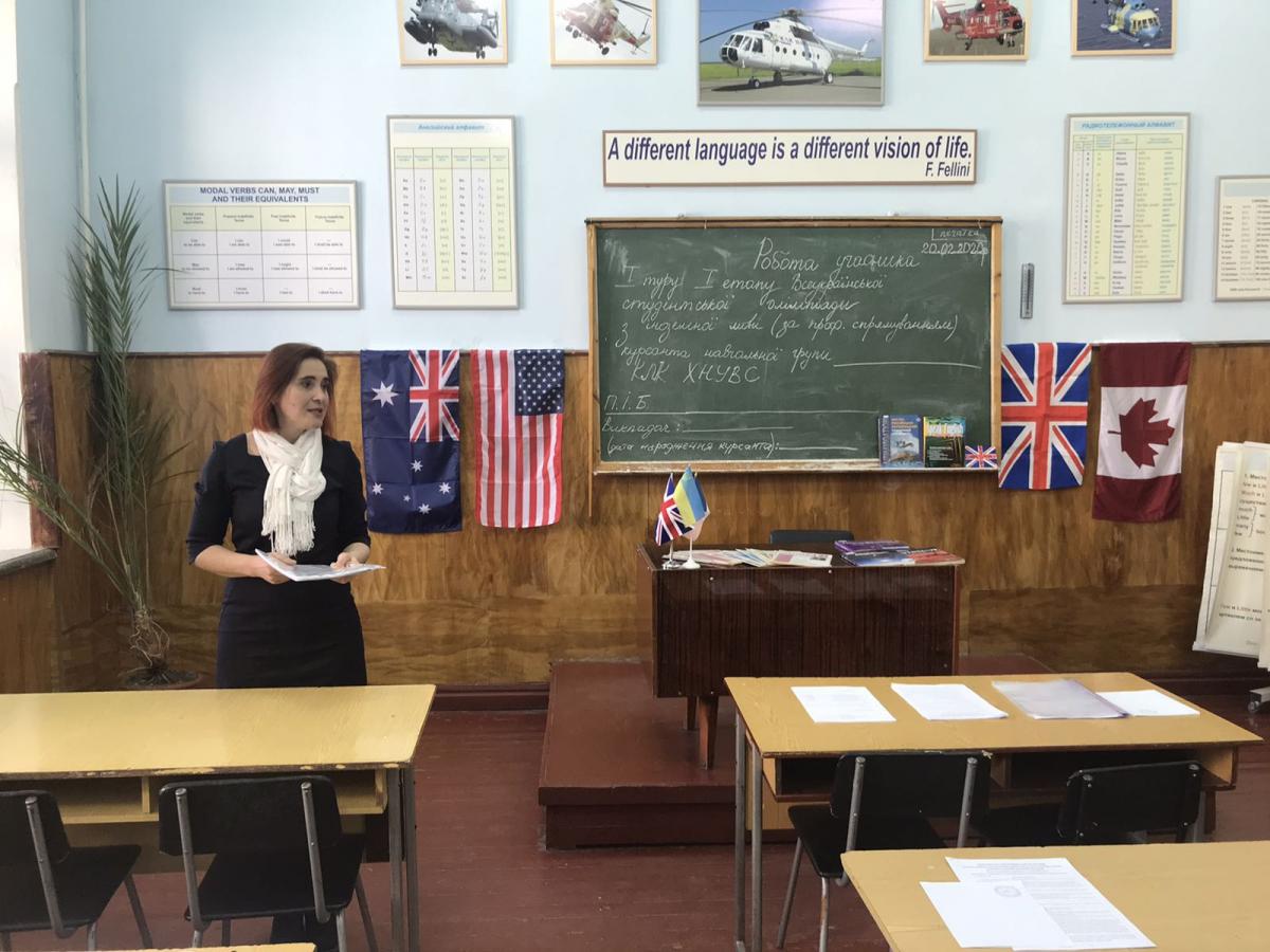 20 лютого 2020р. у Кременчуцькому льотному коледжі Харківського національного університету внутрішніх справ проведений I етап Всеукраїнської студентської олімпіади серед курсантів з дисципліни «Англійська мова» (за професійним спрямуванням). В олімпіаді взяли участь найкращі курсанти коледжу чотирьох навчальних груп. Урочисте відкриття олімпіади розпочалося з промови голови циклової комісії української та іноземної мов Савченко Оксани Анатоліївни, яка розповіла про важливість вивчення іноземної мови та її місце в сучасній освіті. До вітального слова долучилася керівник наукового відділу, кандидат економічних наук Петченко Марина Валентинівна, яка зазначила, що іноземна мова є невід’ємним елементом життя сучасної молоді і досконале володіння якою дозволить розширити кругозір, долучитися до культури інших народів та прославляти традиції свого народу. Викладач англійської мови Гужина Світлана Андріївна наголосила на значенні іноземної мови в сучасному світі, адже знання мови дає змогу міжнародному спілкуванню, досягненню поставлених цілей за допомогою нових можливостей. Вона також побажала всім учасникам олімпіади успіхів і ознайомила курсантів з правилами написання та оформлення робіт. Переможцями олімпіади стали: