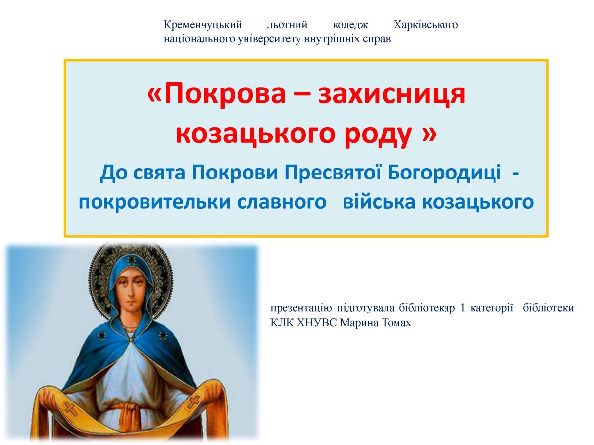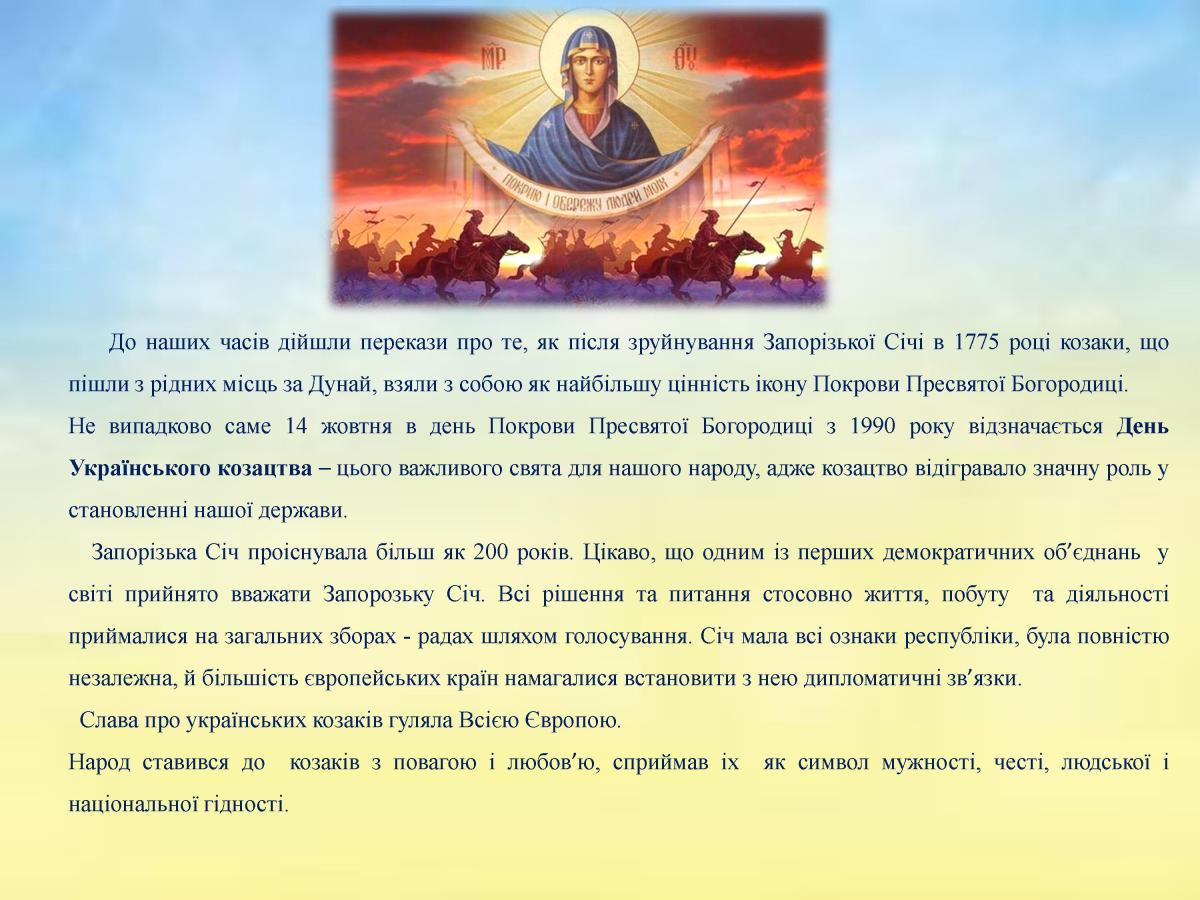 "Покрова – захисниця козацького роду"