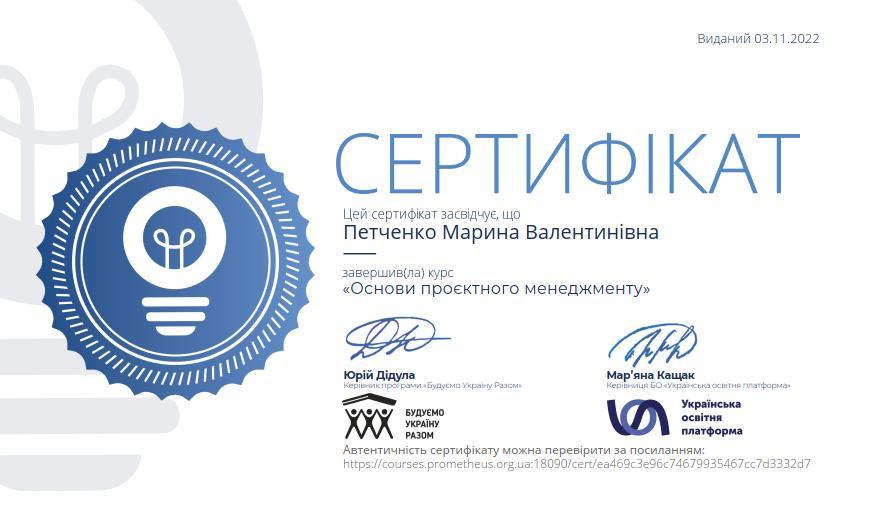Під час онлайн-курсу дізналися: про лідерство та роль лідера в побудові ефективної команди; методологію планування проєктів та написання грантових заявок; як складати бюджет та управляти витратами; про інструменти для комунікації свого проєкту, що відкриває можливості для подальшого розвитку та втілення проєктів у життя; інше. За успішне проходження курсу учасники/ці отримали сертифікати.