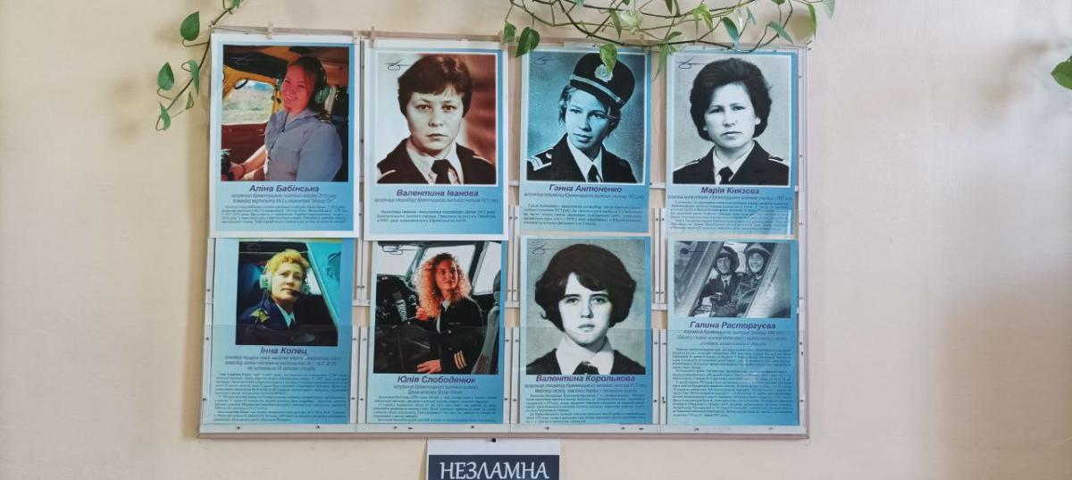 На виставці представлені випускниці Кременчуцького льотного коледжу: Галина Расторгуєва, Анна Антоненко, Валентина Іванова, Валентина Королькова, Надія Локтаєва, Інна Копець, Юлія Слободянюк, Аліна Бабінська та спеціальний випуск жінок-пілотес 1973 року й інші.