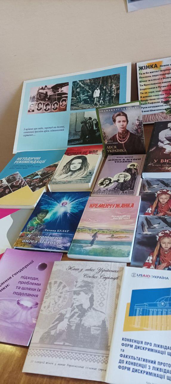 Тематична виставка організована відповідальною з гендерних питань Мариною Петченко, представниками відділу організації наукової роботи та гендерних питань – Вадимом Орлом, Іриною Скачковою, Яною Третяк та завідуючою бібліотеки Ніною Поповою за інформаційної підтримки помічниці ректора ХНУВС з гендерних питань Оксаною Цукан.