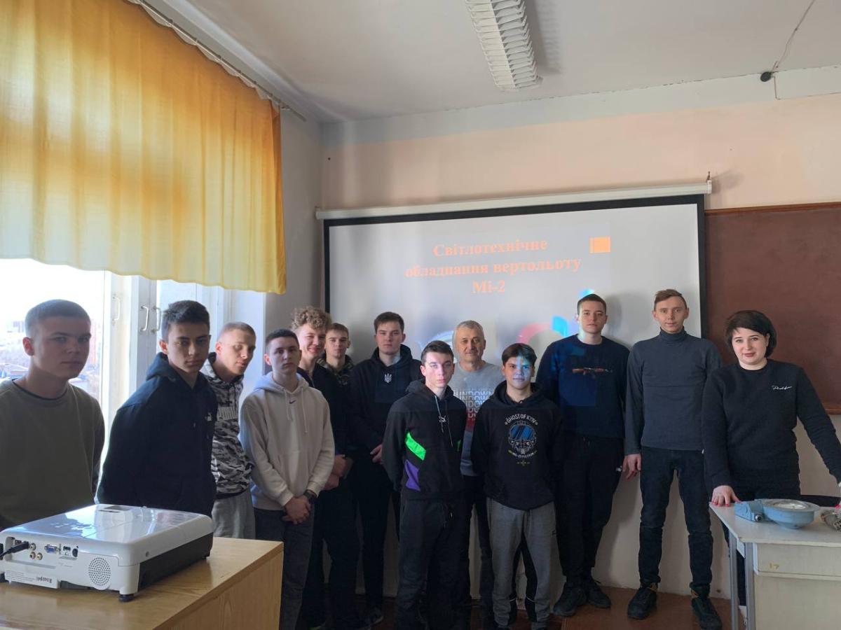Здобувачі ознайомились з внутрішнім та зовнішнім світлотехнічним обладнанням вертольоту Мі-2, його призначенням, принципом роботи, розміщенням на повітряному судні.
