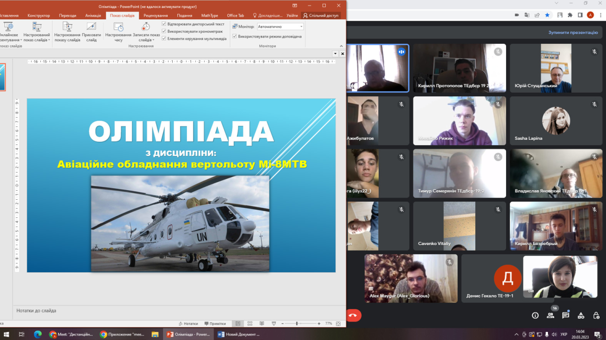 20.03.2022 року на цикловій комісії авіаційного і радіоелектронного обладнання відбулася олімпіада з дисципліни «Авіаційне обладнання вертольоту Мі-8МТВ» серед здобувачів освіти четвертого курсу спеціальності 173 «Авіоніка» Кременчуцького льотного коледжу Харківського національного університету внутрішніх справ.